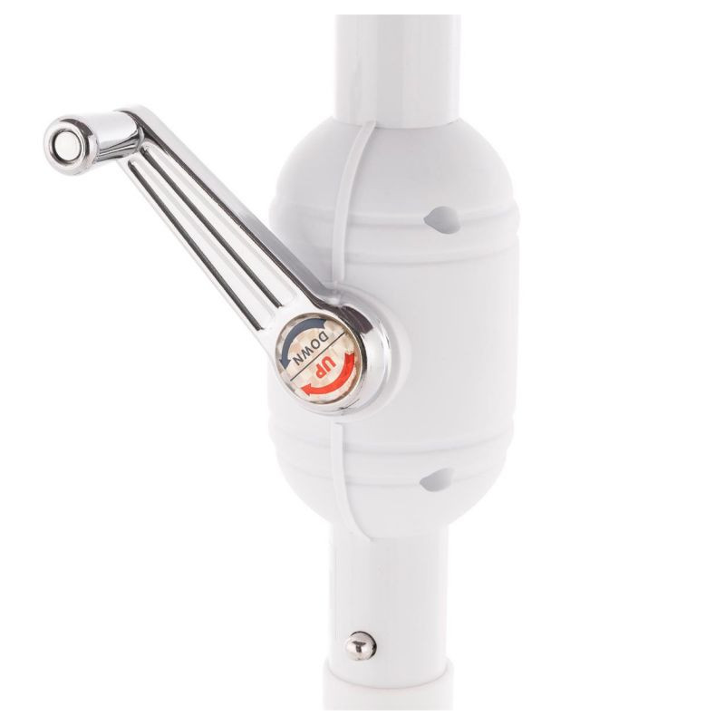 Slnečník má odnímateľný polyesterový poťah, ktorý nevyžaduje špeciálnu údržbu. Praktická veterná kapucňa zabraňuje hromadeniu tepla a zaisťuje stabilitu.