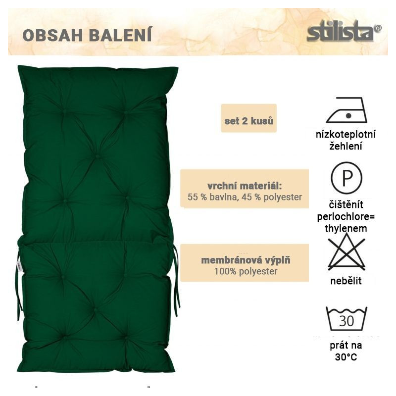 Štyri popruhy a nariasený gumový záchytný opasok na každom vankúši stoličky zabraňujú nepríjemnému skĺzavaniu. Membránová výplň z dutých vlákien zároveň podporuje priedušnosť vankúša. Vďaka 8 cm silnému polstrovaniu je vankúš stoličky mimoriadne pohodlný a po sedení sa vracia do pôvodného tvaru. Vodoodpudivý a ľahko udržiavateľný poťah zabraňuje priamemu vniknutiu kvapalín.