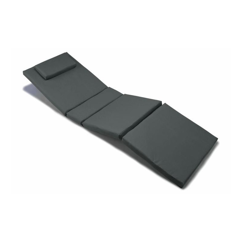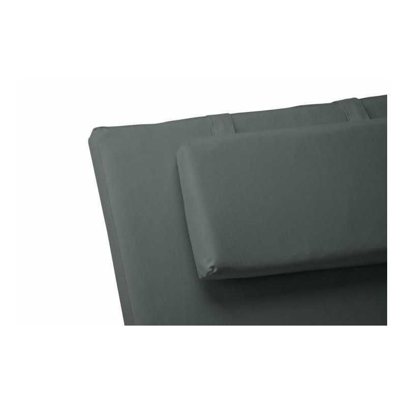 Kvalitné, štýlové polstrovanie na záhradné ležadlo v antracitovej farbe, nenáročné na údržbu. Poťah je vyrobený z robustného štruktúrovaného polyesteru. Podložka je navyše vybavená vankúšom v hlavovej časti. Vďaka skrytému všitému zipsu máte možnosť poťah kedykoľvek rozopnúť a vyčistiť. Elegantná podložka je veľmi pohodlná a premení Vaše záhradné ležadlo na útulný záhradný nábytok. Na zadnej strane podložky sú upevňovacie pruhy, s ktorými môžete podložku pripevniť k stoličke.