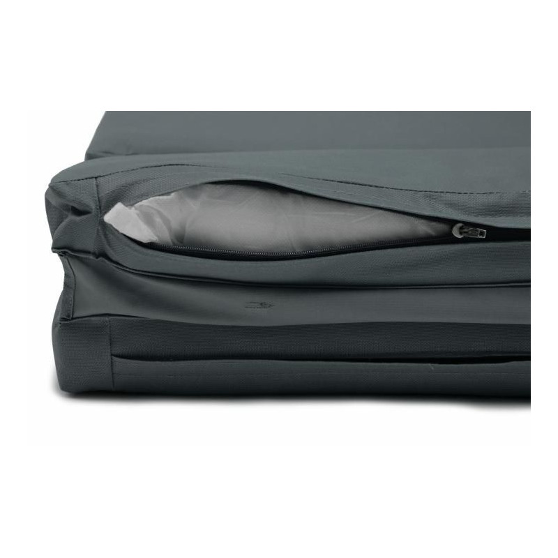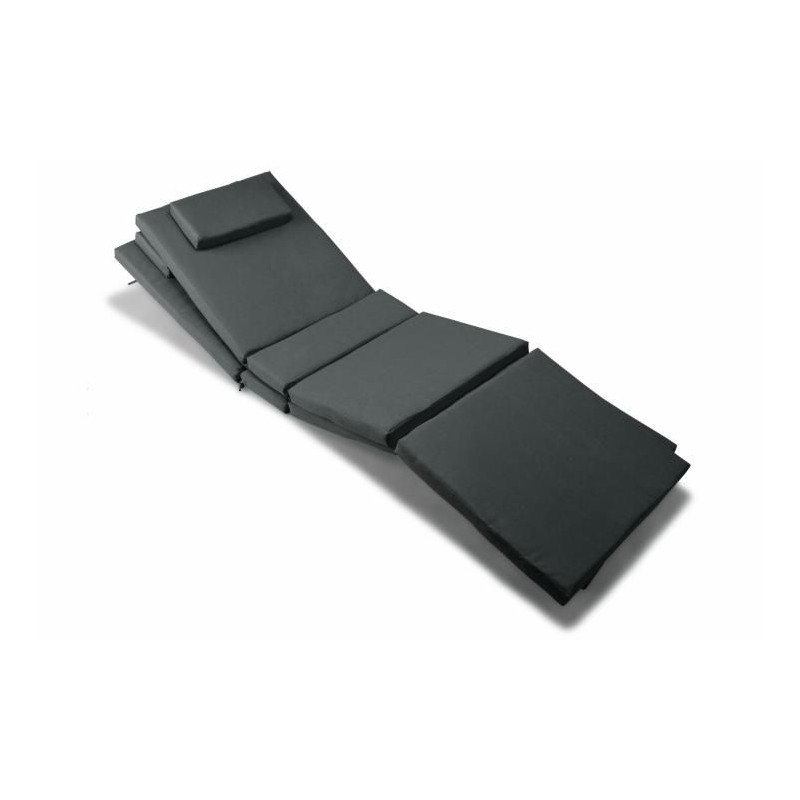 Kvalitné, štýlové polstrovanie na záhradné ležadlo v antracitovej farbe, nenáročné na údržbu. Poťah je vyrobený z robustného štruktúrovaného polyesteru. Podložky sú navyše vybavené vankúšom v hlavovej časti. Vďaka skrytému všitému zipsu máte možnosť poťah kedykoľvek rozopnúť a vyčistiť. Elegantné podložky sú veľmi pohodlné a premenia Vaše záhradné ležadlo na útulný záhradný nábytok. Na zadnej strane podložiek sú upevňovacie pruhy, s ktorými môžete podložku pripevniť k stoličke.