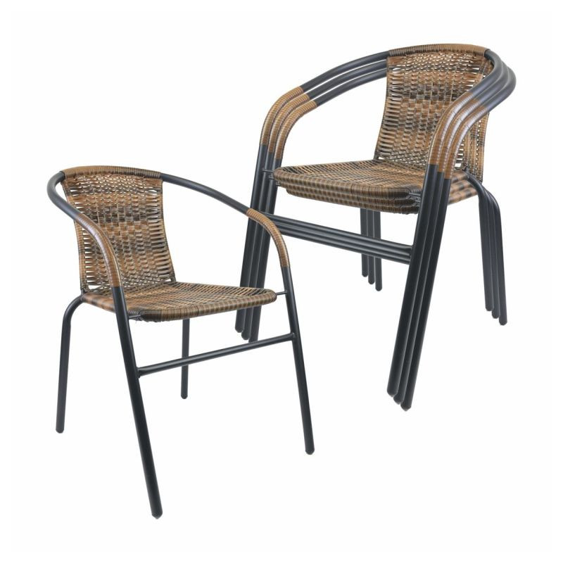 Sada záhradných bistro stoličiek, stohovateľná, hnedá, 4 ks