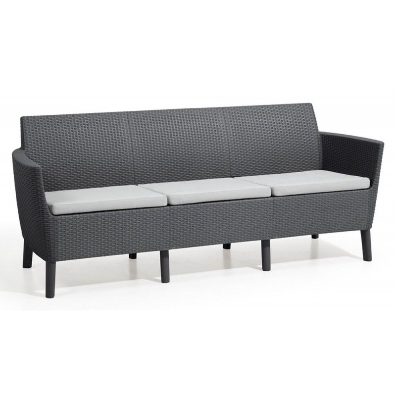 Salemo je úplná novinka na trhu, ktorá skvele vynikne v modernom aj retro štýle bývania. Jedná sa o elegantnú trojmiestnu pohovku v imitácii ratanu. Produkt je dodávaný s pohodlnými poduškami v štýlových farbách. Ľahká a stabilná konštrukcia nábytku sa skvele hodí do exteriéru aj interiéru. Je veľmi jednoduchá na údržbu. Výrobok je vysoko odolný proti UV lúčom a poveternostným vplyvom.