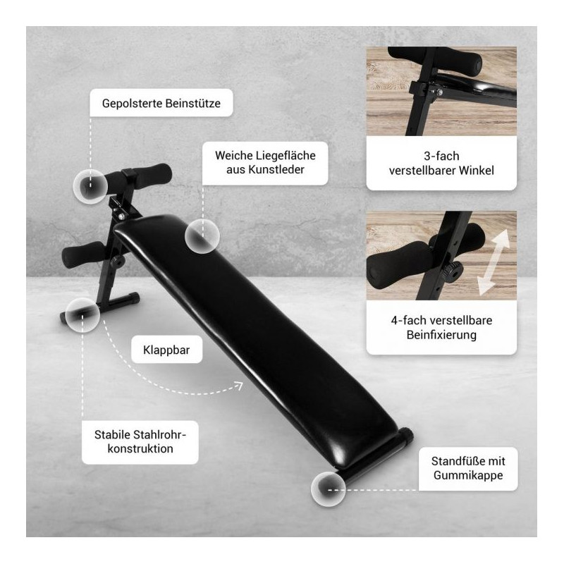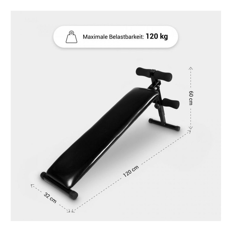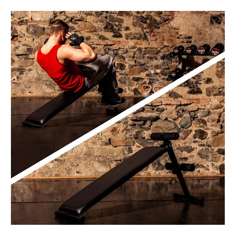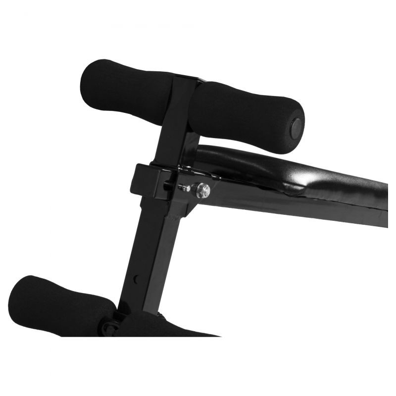 Šikmá polohovateľná lavička vhodná na precvičovanie brušných a chrbtových svalov. Stabilná oceľová konštrukcia s protišmykovými nôžkami umožňuje bezpečné cvičenie v domácom prostredí.