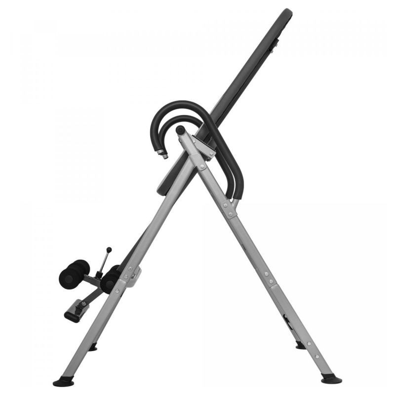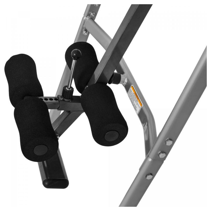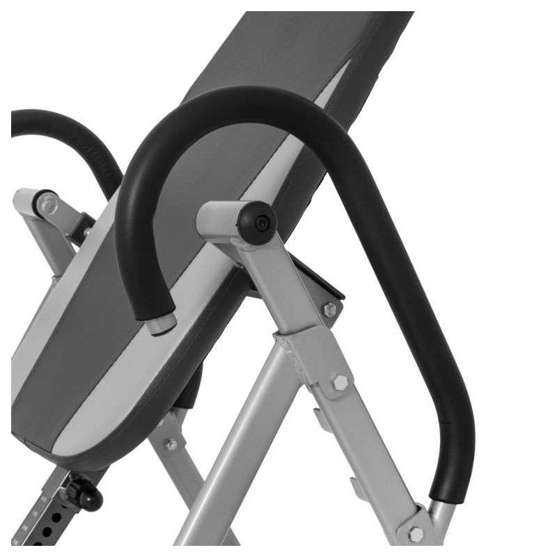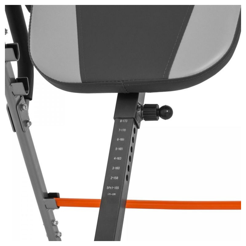 Keď zariadenie nepotrebujete, zložíte gravitačný trenažér, aby ste ušetrili miesto, a umiestnite ho do rohu. Jeho športový dizajn s čiernou, sivou a oranžovou farbou sa hodí do akéhokoľvek tréningového prostredia. Samotný váži 30 kg a má maximálnu nosnosť 110 kg. Jeho rozmery v rozloženom stave sú 98 x 65,5 x 152,5 cm. Chrbtová podložka má rozmery 48 x 110 cm.