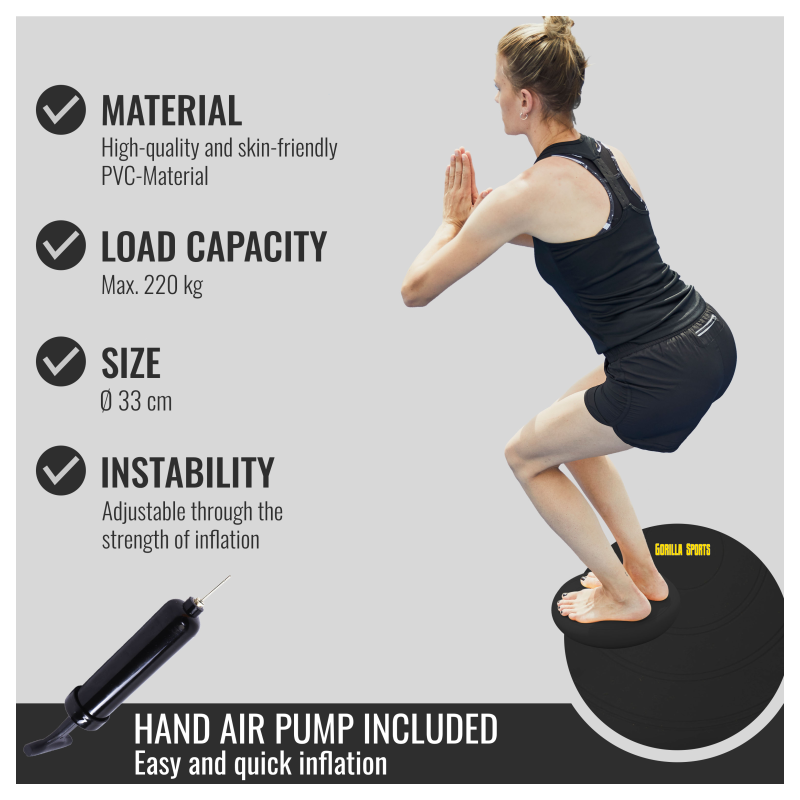 Všestranné použitie: ako podložka na loptu na uvoľnenie tlaku pri sedení alebo ako trenažér rovnováhy