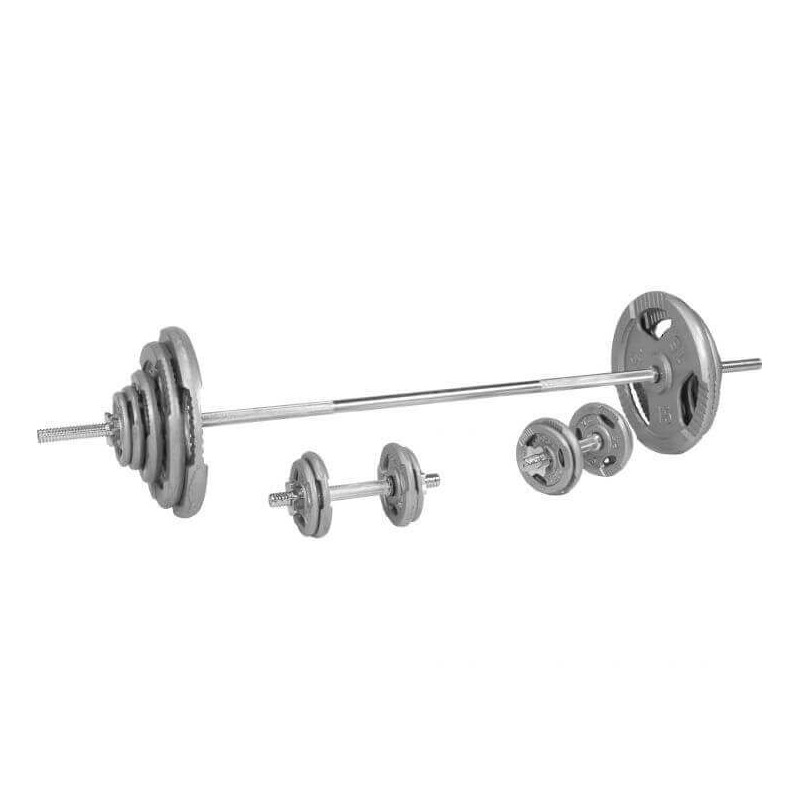 Tento nakladací činkový set je vhodný na plnohodnotné a komplexné cvičenie horných svalových partií, ako sú: ramená, paže, chrbát, hrudník a nohy. Pomocou jednoručiek dokážeme precvičiť svalstvo hornej aj dolnej časti tela rôznymi cvikmi. Pomocou nakladacej dlhej tyče môžeme cvičiť výpady alebo drepy, ramená, chrbát a iné. Činkovú tyč je vhodné použiť s posilňovacou lavičkou alebo stojanom na činky.