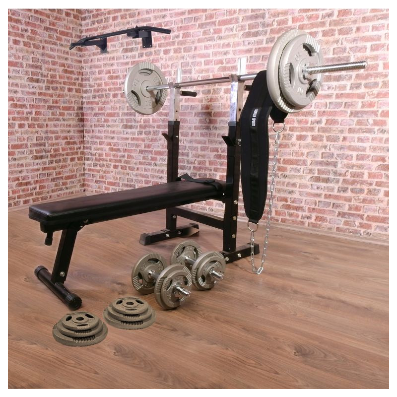 Multifunkčná polohovateľná lavička so stojanom na veľkú činku.