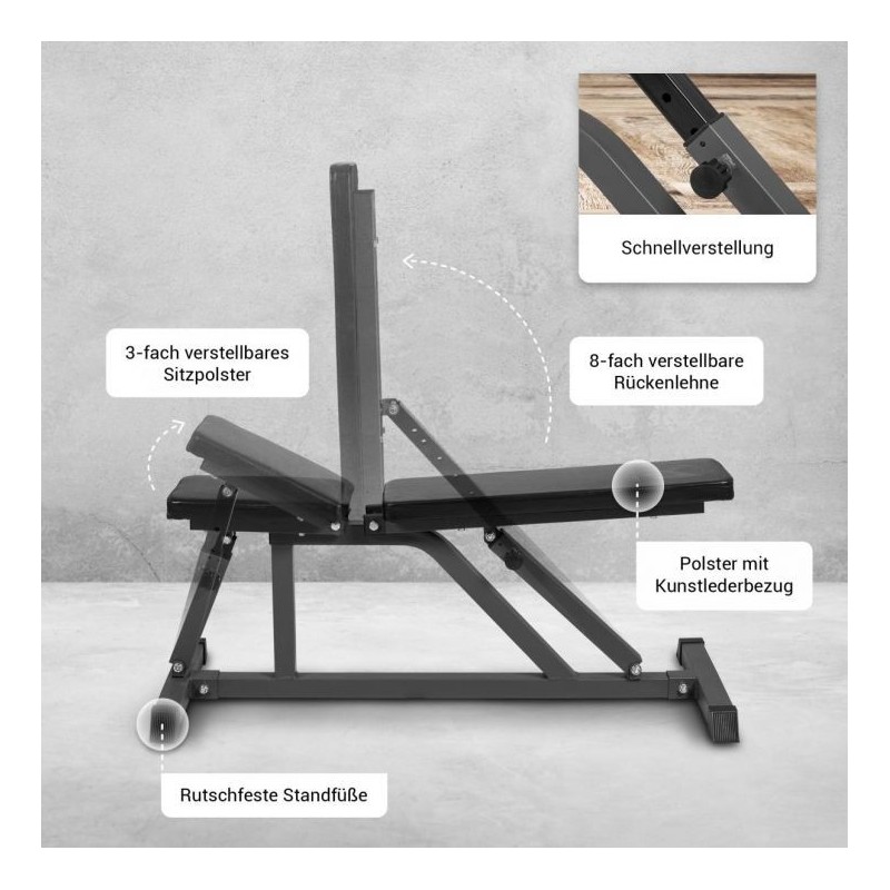 Gyronetics E-Series Multi šikmá lavičká je vhodná pre rôzne silové cvičenia. Okrem tlakov na lavičke s činkami a vojenských tlakov môžete cvičiť aj motýliky v ľahu/naklone alebo motýliky v opačnom smere. Tréning je najefektívnejší, keď kombinujete cviky na rovnej lavici a na šikmej lavici.
