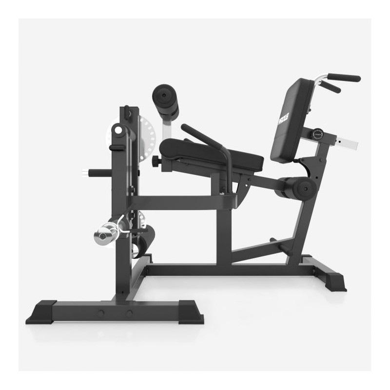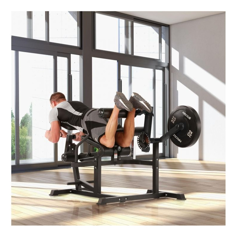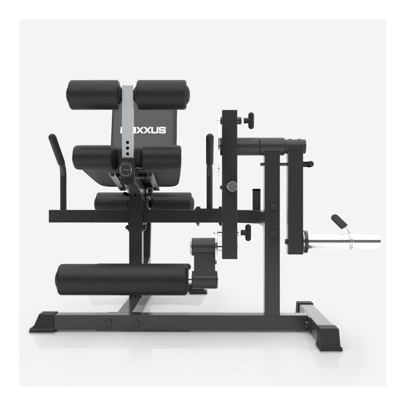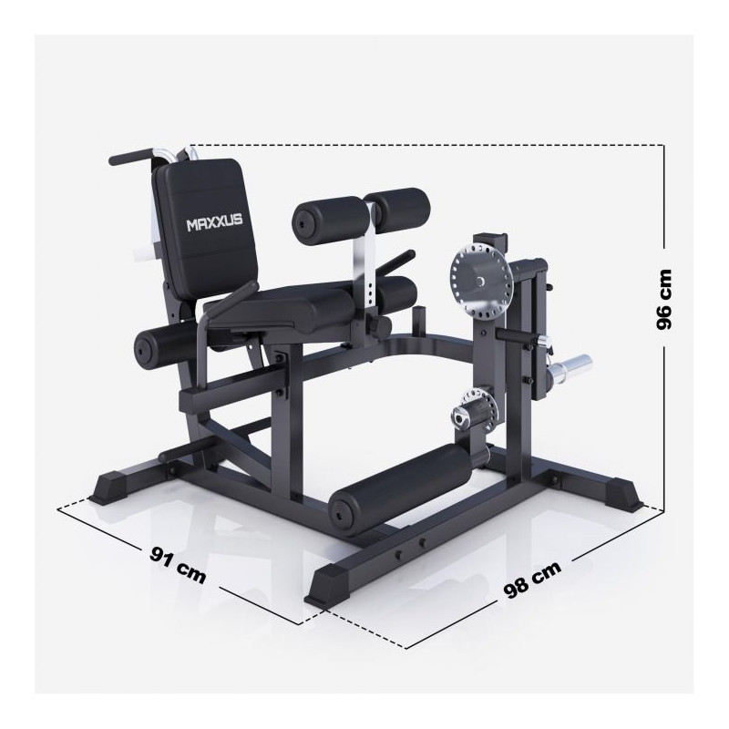 Stroje pre jedného používateľa, ako je MAXXUS Multitrainer Pro, sú známe z fitness štúdií. Ich výhodou je, že na nich môžete optimálne cvičiť bez toho, aby prílišná rozmanitosť cvikov narušovala ergonómiu stroja. Tento stroj má držiak na záťažové dosky s otvormi s priemerom 50/51 mm v chrómovanom prevedení. Polstrovanie je možné ľahko nastaviť. Týmto spôsobom je možné trenažér prispôsobiť veľkosti tela a požadovanému cvičeniu. Hmotnosť trenažéra Multitrainer Pro je približne 53 kg a spolu s podperami na podlahe zaisťuje bezpečné postavenie počas tréningu.