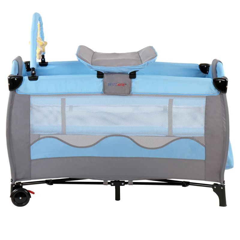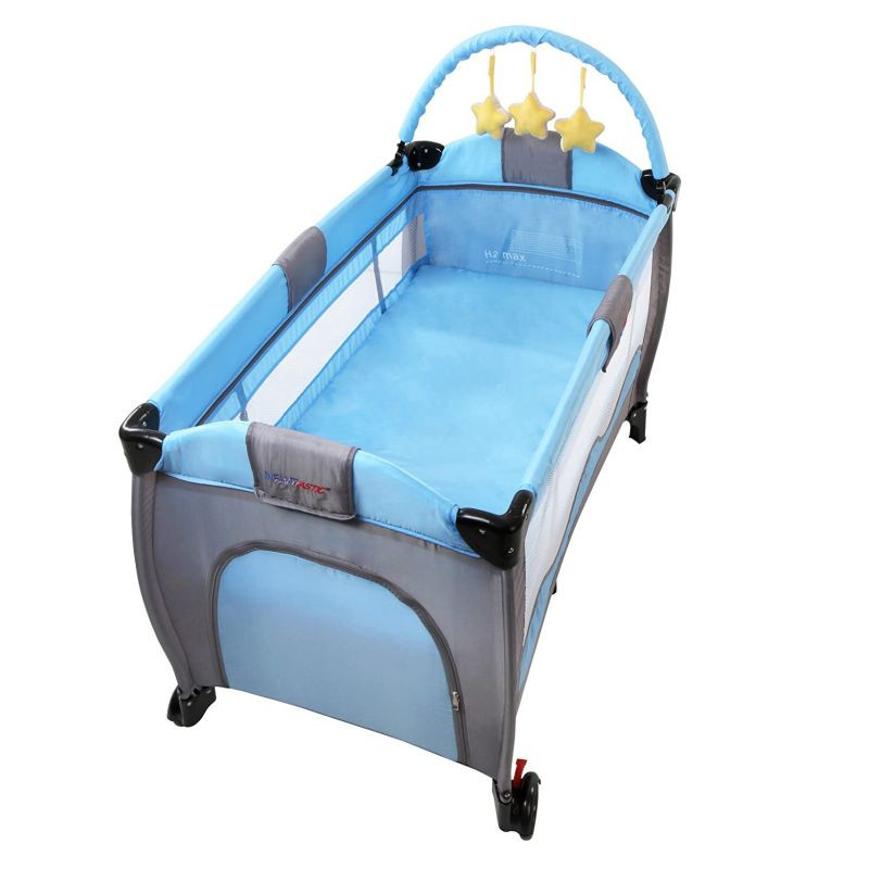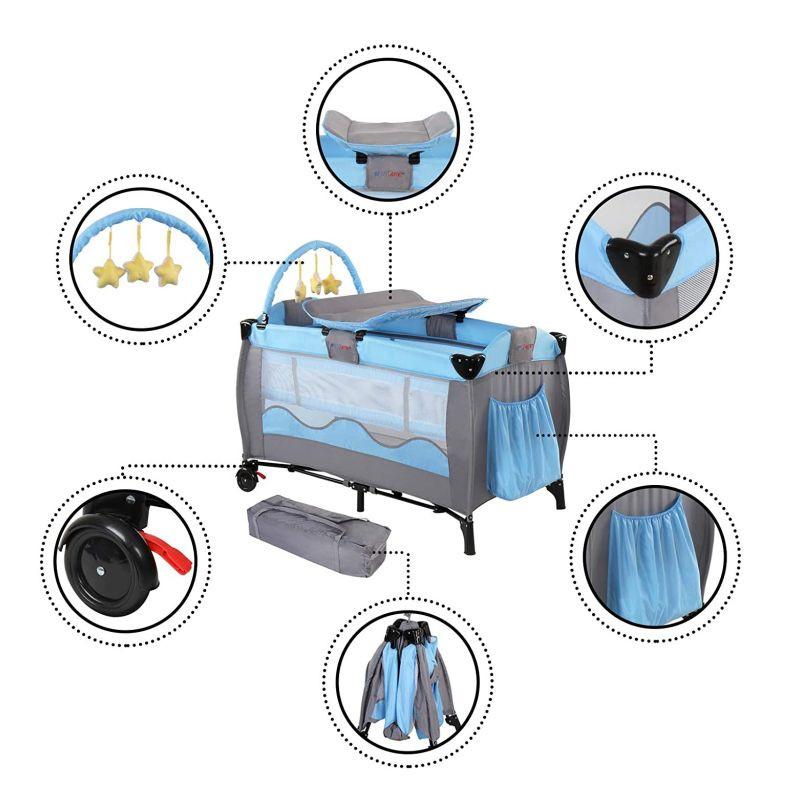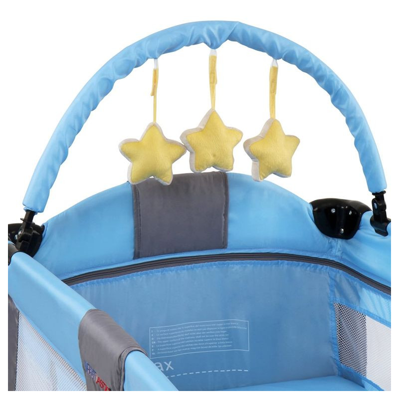 Táto detská postieľka je naozaj praktická. Ponúkne Vám hrací oblúk a prebaľovaciu podložkou pre dojčatá. Matrac je polstrovaný. Herný oblúk je so zavesenými plyšovými hviezdami. Postieľka má praktický vstup na zips a úložný priestor na predných stranách, polstrované hrany a zaoblené rohy pre deti do veku 36 mesiacov alebo pre maximálnu hmotnosť dieťaťa cca 15 kg. Umývateľný poťah Vám ponúka jednoduchú údržbu. Postieľka sa ľahko zloží a úsporne uschová.