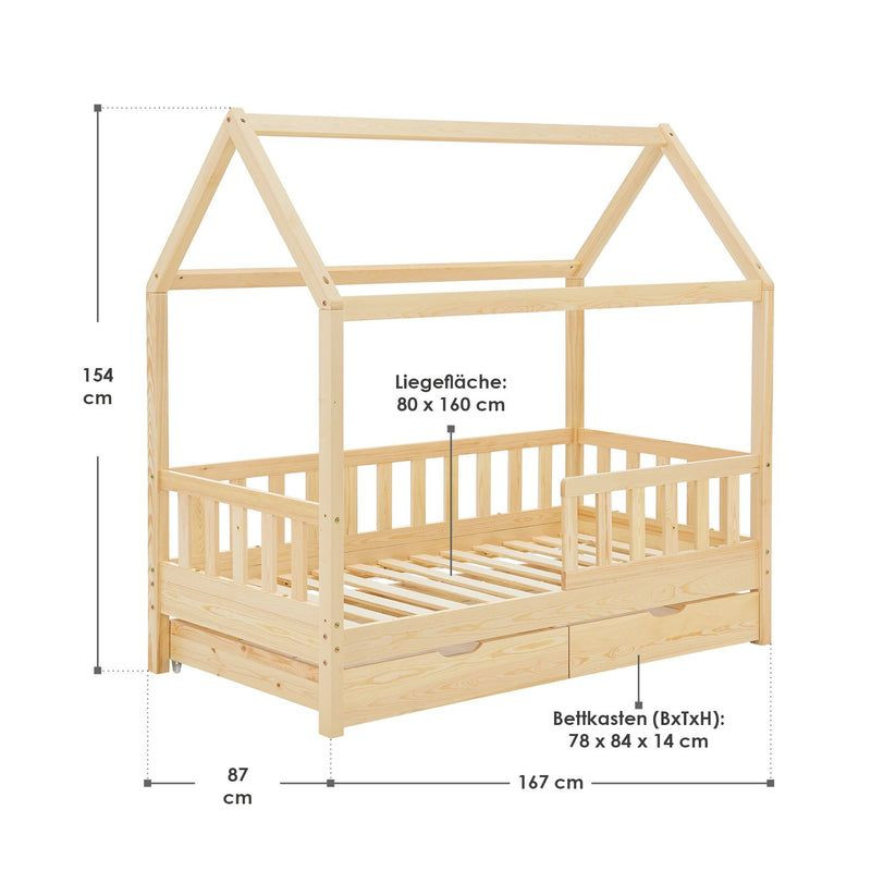 Detská posteľ v tvare domčeka vytvára pokojné a bezpečné miesto na spanie a odpočinok pre vaše dieťa. Vďaka svojmu jednoduchému dizajnu sa ľahko hodí do každej detskej izby a ponúka priestor, kde sa vaše dieťa bude každý deň cítiť pohodlne.
