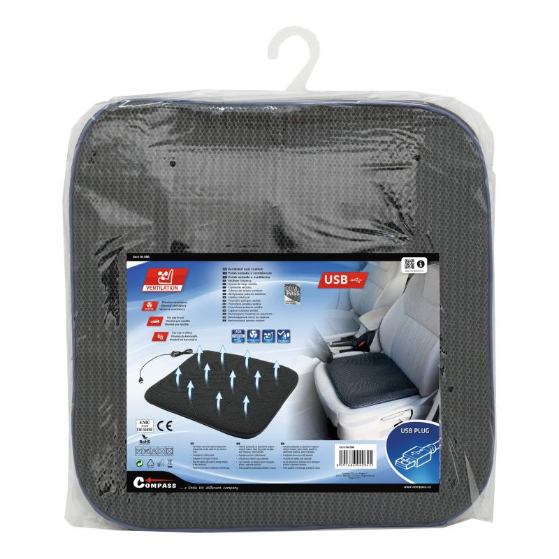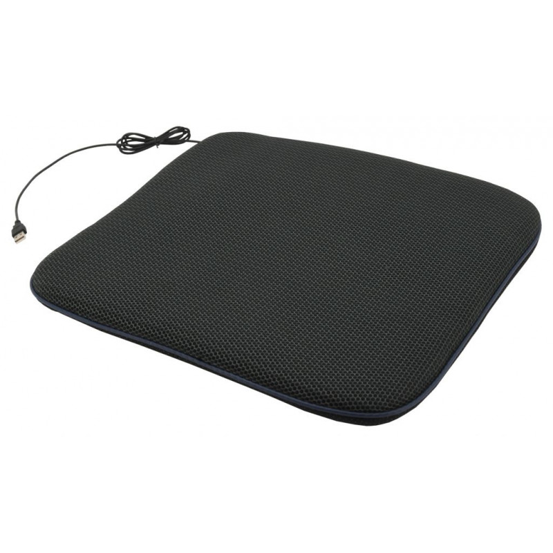 Podsedák z veľmi príjemného materiálu, s ventilátorom a integrovaným senzorom, ktorý spína vetranie v momente zaťaženia (sedenia). Poťah je ideálnym doplnkom v horúcich ročných obdobiach. Napájanie je riešené USB káblom. Podsedák tak stačí položiť na kreslo v kancelárií, vo vozidle alebo inde na miestach s prístupom k USB zásuvke a užiť si príjemné chladenie. Podsedák je možné používať aj vo vozidlách so sedadlami so zabudovaným airbagom.