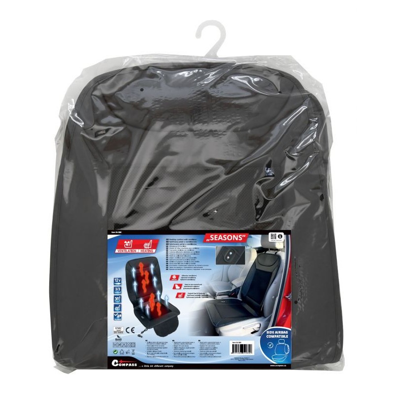 Kombinovaný poťah sedadla z veľmi príjemného materiálu s vyhrievaním a ventilátorom na ohrev / ventiláciu chrbtovej a sedacej časti. Integrovaný ovládač zaistí jednoduchú voľbu jedného z troch stupňov intenzity vetrania / váhrevu. Poťah je ideálnym doplnkom pre príjemnú jazdu v chladných, ale aj horúcich ročných obdobiach. Zapojenie do bežnej zásuvky automobilového zapaľovača pomocou konektora. Univerzálny systém upevnenia pomocou háčikov a pružných popruhov, ktorými je možné pripevniť na väčšinu bežne používaných automobilových sedadiel. Poťah je možné použiť aj na sedadlách, ktoré majú zabudovaný bočný airbag priamo v operadle predných sedadiel.
