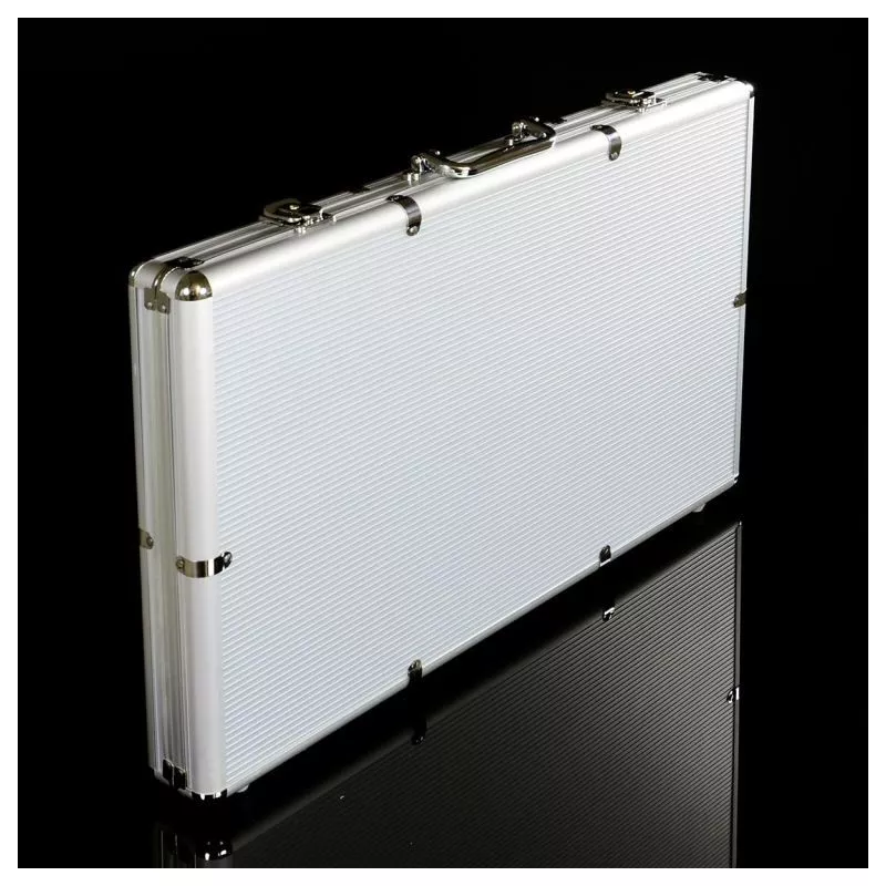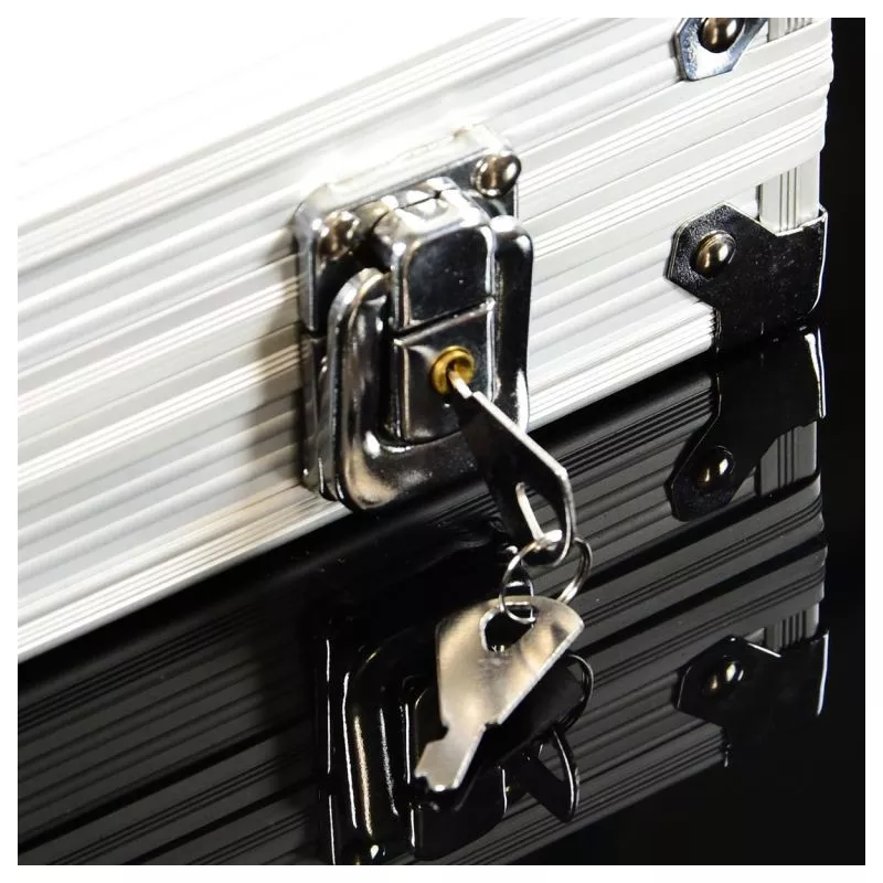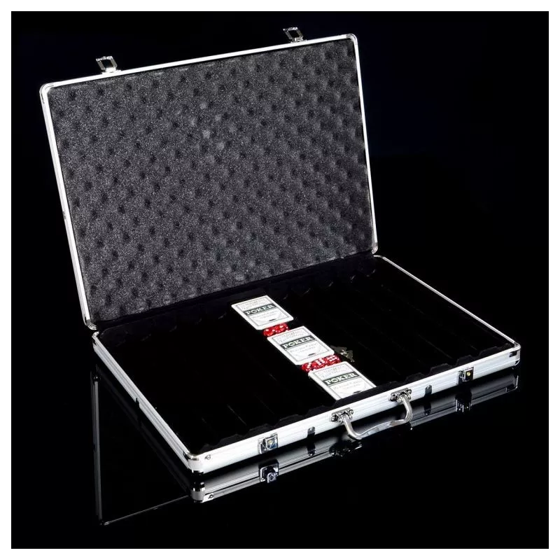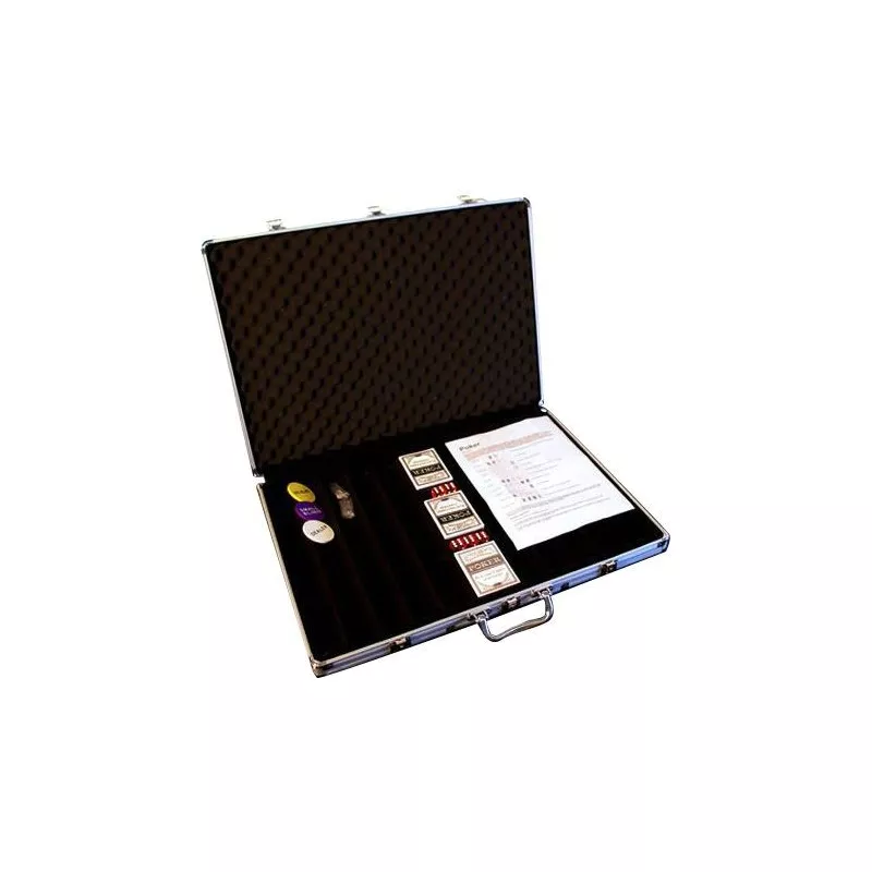 Robustný hliníkový kufor s dvoma zámkami je ideálny až pre 1 000 pokerových žetónov. Je potrebné dokúpiť žetóny, ktoré si môžete individuálne vybrať, zvyšok vybavenia je kompletný.
