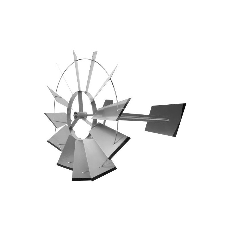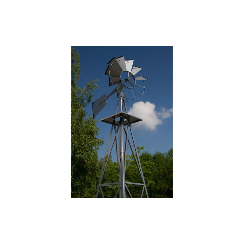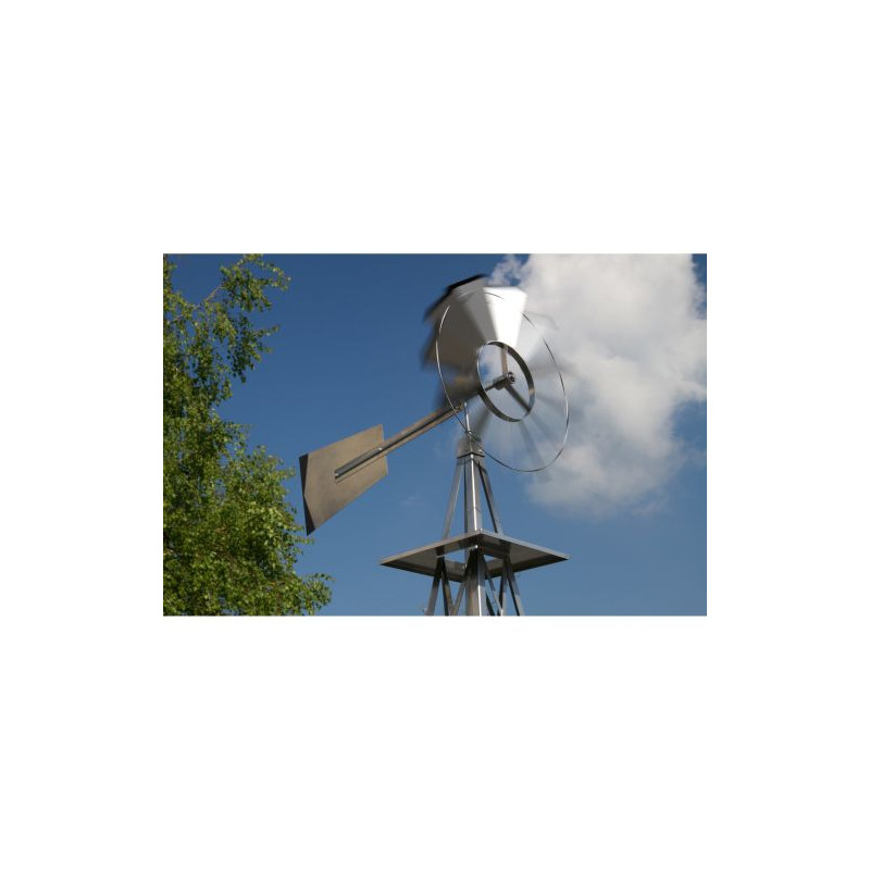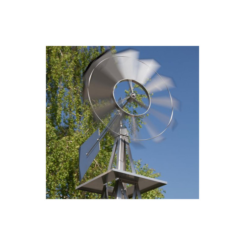 Obrovský veterný mlyn v americkom štýle! Je vernou kópiou amerických veterných mlynov, ktoré môžeme ešte dnes nájsť na mnohých amerických statkoch. Disponuje guličkovým ložiskom, ktoré mu prepožičiava ľahkú a tichú prevádzku.