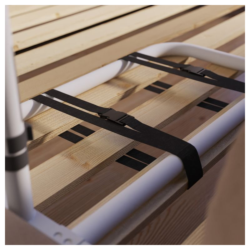 Oceľová konštrukcia zaisťuje vysokú odolnosť a dlhú životnosť. Montáž je rýchla a jednoduchá vďaka bezpečnostnému popruhu, ktorý pevne drží madlo na mieste. Výškovo nastaviteľné madlo umožňuje individuálne nastavenie podľa potrieb užívateľa. Údržba je nenáročná a zvládne ju každý.