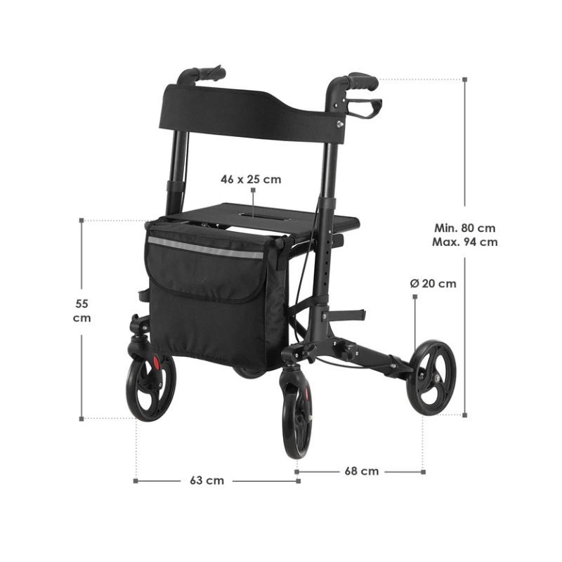 Vital walker vám poskytuje slobodu a istotu pri každom kroku. Vďaka stabilnej konštrukcii, pohodlnému sedadlu a praktickej taške máte všetko, čo potrebujete na bezpečné a pokojné prechádzky a relaxáciu. Je vyrobený z ľahkého, ale pevného hliníka, vďaka čomu sa ľahko ovláda a prenáša. Skladací mechanizmus umožňuje jednoduché skladovanie, výškovo nastaviteľné rukoväte sa prispôsobia vašej výške a spoľahlivé brzdy zaručujú bezpečnosť aj na nerovnom teréne.