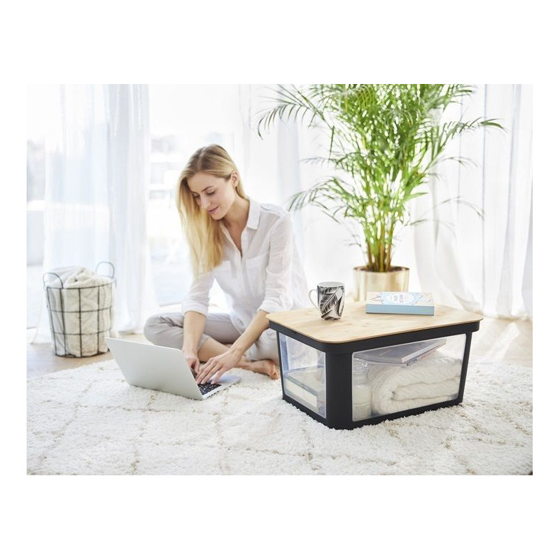 Úložný box je všestranný a je možné ho tiež stohovať jeden do druhého, aby sa ušetrilo miesto, keď sa nepoužíva.