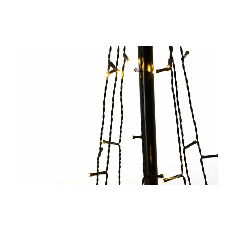 8 LED prameňov vždy po 12 teplých bielych LED svetielkach vytvára formu 1,80 m vysokého kužeľa. Svietiaci stĺp s hviezdou na špici s priemerom cca 22 cm je vhodný pre použitie v interiéri aj exteriéri. Čierny prívodný kábel má dĺžku 5 metrov od sieťového pripojenia k prvej LEDke. Kovová konštrukcia svetelného kužeľa má ako stabilný základ nohu s okrúhlou podstavou s priemerom cca 60 cm.