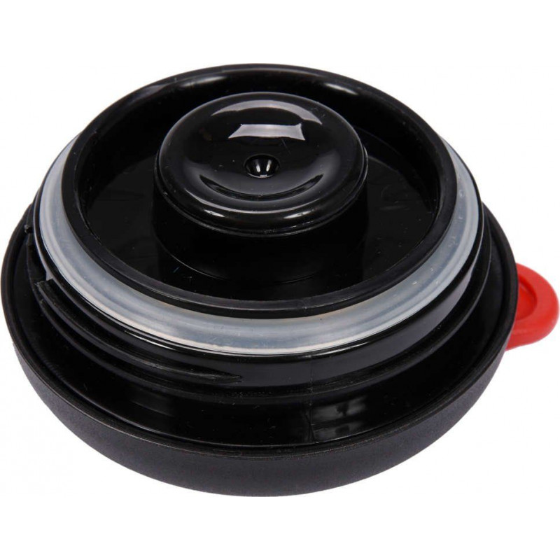Kryt a rukoväť sú vyrobené z čierneho polypropylénu a tlačidlo je v červenej farbe.