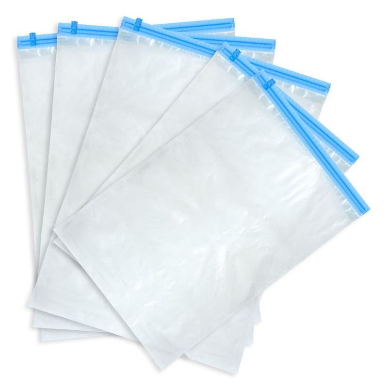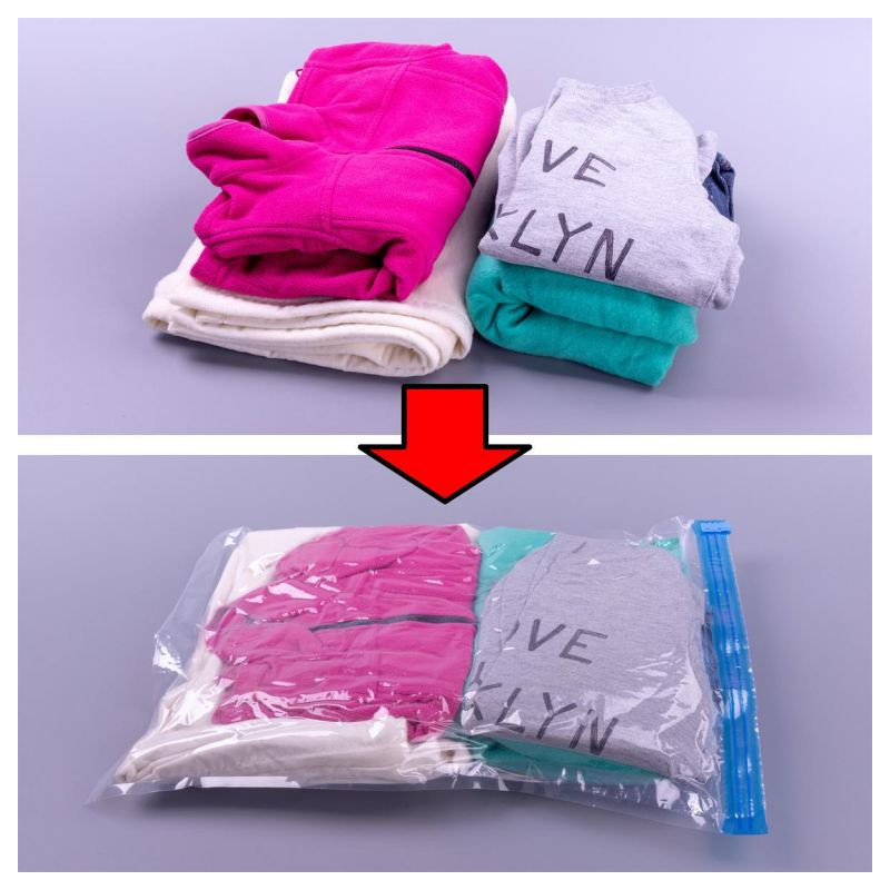Vďaka modernej tesniacej technike sáčky spoľahlivo udržujú vzduch trvale a opakovane. Textílie vo vákuovom vaku sú chránené proti škodlivým vplyvom prostredia ako je vlhkosť, pachy, škodcovia alebo plesne. Vákuové sáčky vytvárajú miesto vo Vašom šatníku alebo v cestovnom kufri. Či už doma v skrini, na uloženie sezónneho oblečenia alebo pri cestovaní. Naše vákuové sáčky sú praktickými pomocníkmi v domácnosti. Vrecká sú vyrobené z robustného transparentného plastu PA + PE.