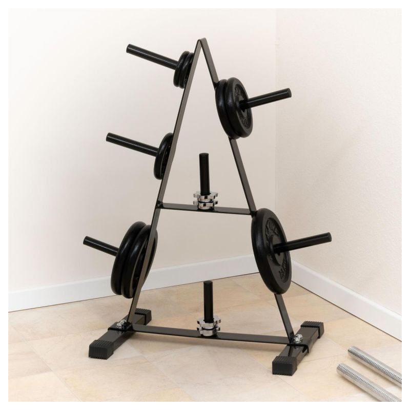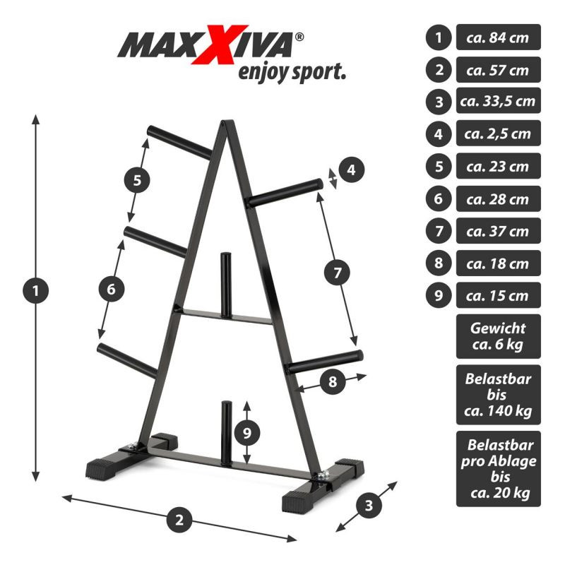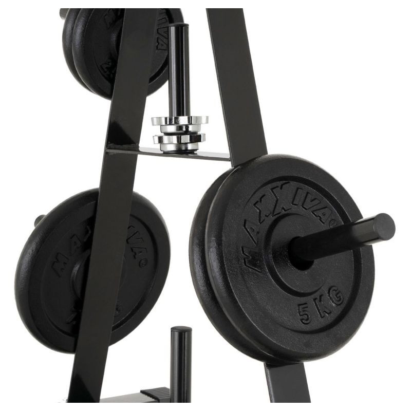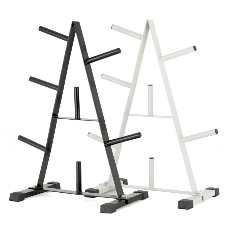Praktický stojan na činky v atraktívnom dizajne je vhodný na uloženie činkových tyčí, príslušenstva a záťažových dosiek . 7 držiakov pre závažie s priemerom otvoru 30/31 mm ponúka dostatok miesta pre Vaše vybavenie. Stojan má kvalitnú oceľ - je vyrobený z vysoko kvalitnej rúrkovej ocele v neutrálnej bielej farbe. Pogumované nožičky zaisťujú dobré odpruženie a stabilizáciu.