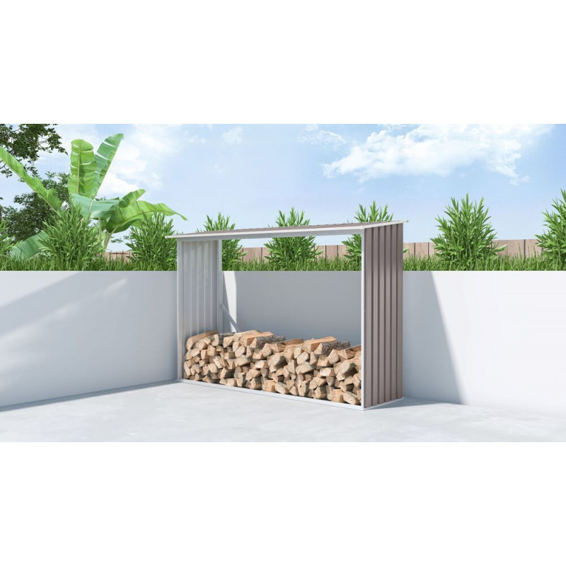 Prevedenie v elegantnej farbe taupe s bielymi rámami sa skvele hodí do akéhokoľvek exteriéru, či už na záhradu alebo k domu. Rýchla montáž. Silné sťahovacie pásky (zavetrovanie) pre väčšiu stabilitu drevníka.