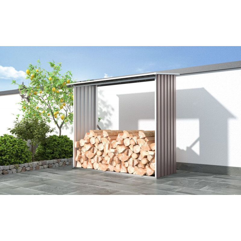 Prevedenie v elegantnej farbe taupe s bielymi rámami sa skvele hodí do akéhokoľvek exteriéru, či už na záhradu alebo k domu. Rýchla montáž. Silné sťahovacie pásky (zavetrovanie) pre väčšiu stabilitu drevníka.