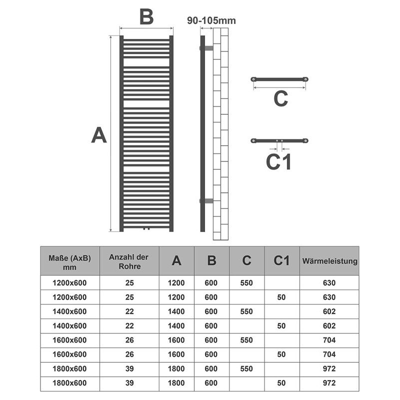 - hĺbka (s nadstavcom): 90 až 105 mm
