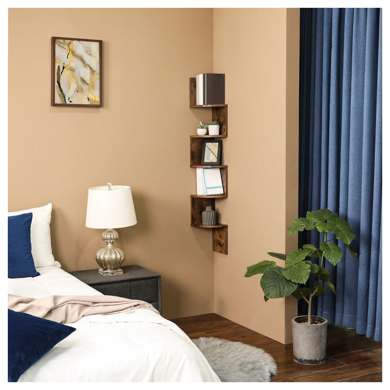Štýlová rohová polica VASAGLE dokáže aj malému priestoru dodať nový rozmer. Vďaka originálnemu kľukatému tvaru sa stane nielen praktickým úložným miestom, ale aj dizajnovým prvkom vášho domova. Otvorená konštrukcia uľahčuje prístup ku knihám, dekoráciám aj rastlinám a vynikne ako v obývacej izbe, tak v spálni či kancelárii.