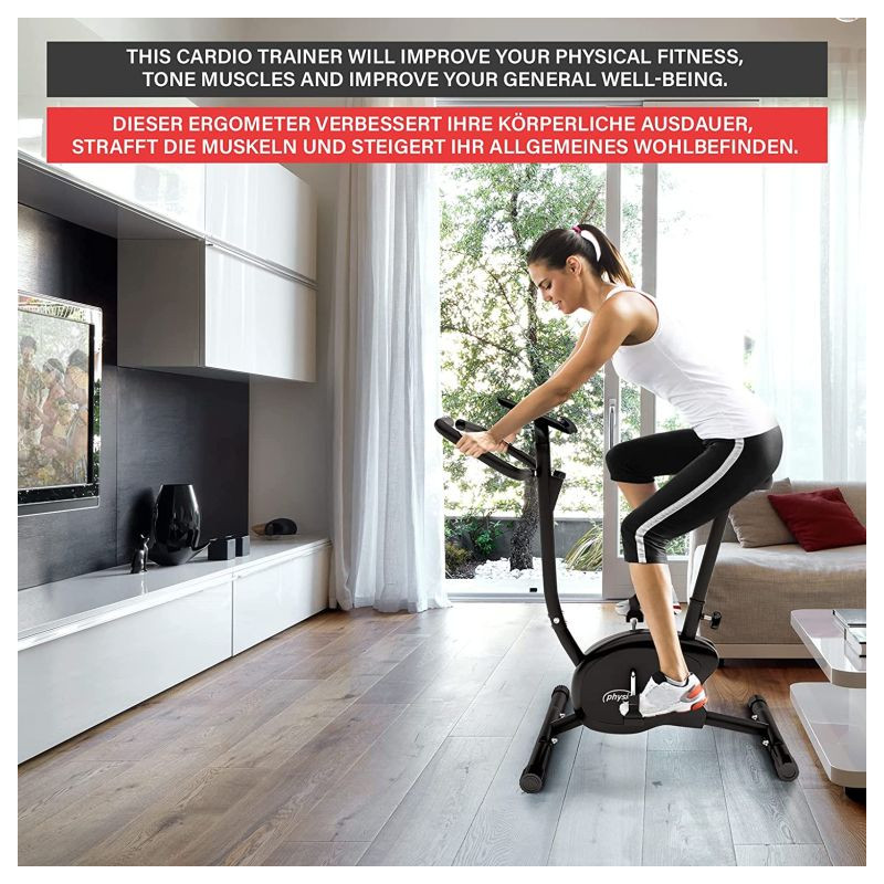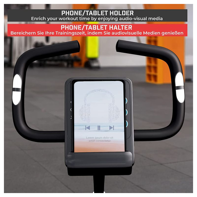 Vďaka kompaktným rozmerom je tento rotoped ideálny do malých priestorov. Fitness bicykel s premenlivým odporom umožňuje efektívne vytrvalostný tréning užívateľom s maximálnou hmotnosťou až 100 kg. Sedadlo fitness kola možno vertikálne nastaviť do rôznych výškových úrovní.