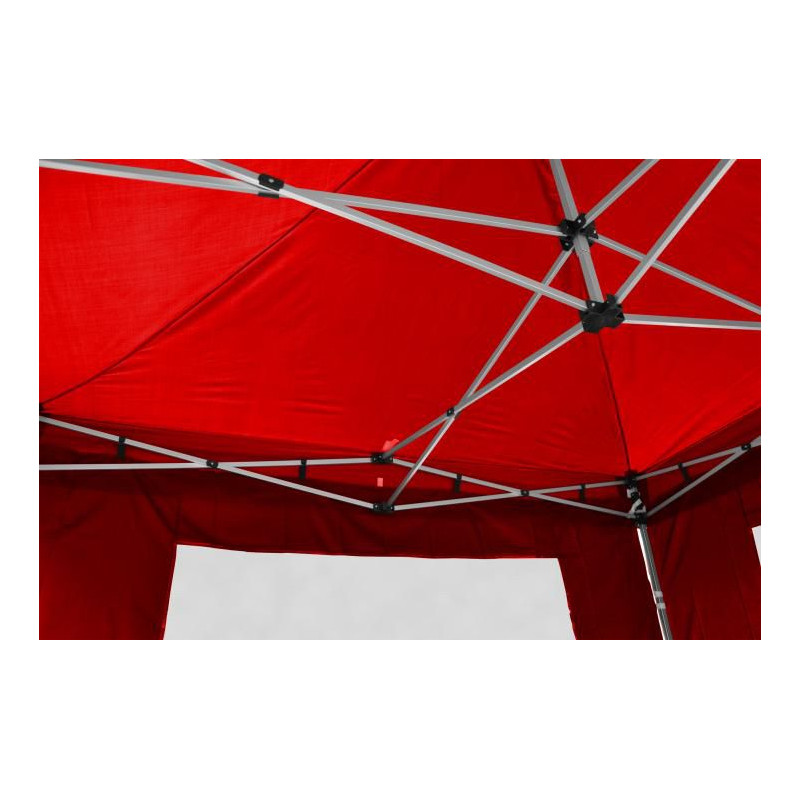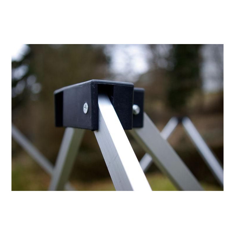 Tento záhradný stan je ideálny na všetky možné akcie - na záhradné oslavy, firemné večierky, stánkový predaj, zastrešenie aparatúry na festivaloch apod. Vďaka nožnicovej konštrukcii je možné stan zostaviť a zložiť počas pár minút. Stanová konštrukcia je obdĺžnikového tvaru v šikovnej prenosnej taške, takže s ňou nie je problém cestovať. Záhradný stan Vás ochráni pred priamym slnečným žiarením, nepríjemným dažďom alebo iným nepriaznivým počasím. Bočné steny sú k nohám pripevnené pomocou suchých zipsov a k hornej hrane konštrukcie pomocou háčikov. Nohy stanu sú teleskopicky polohovateľné a majú plastové pätky pre ukotvenie do zeme.
