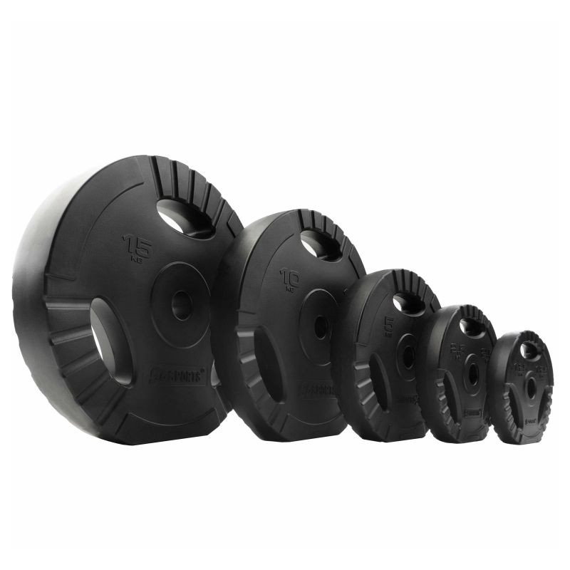 Plastový povrch s cementovou výplňou zaisťuje dlhú životnosť a jednoduchú údržbu. Kompatibilný s osami 30/31 mm, vhodné aj na samostatné cvičenie bez činky. Kompaktné rozmery umožňujú ľahké skladovanie.