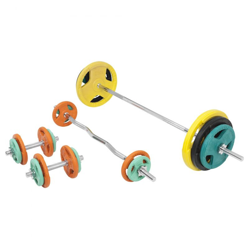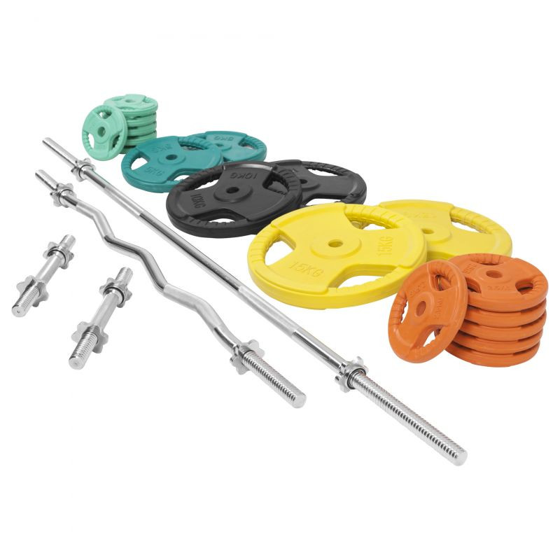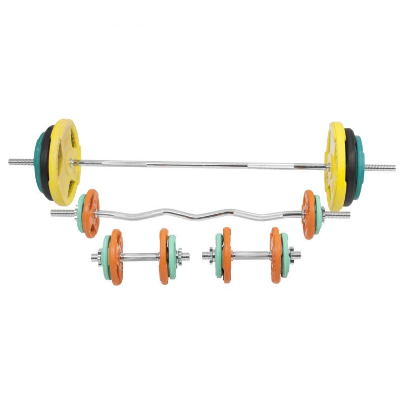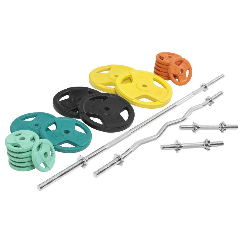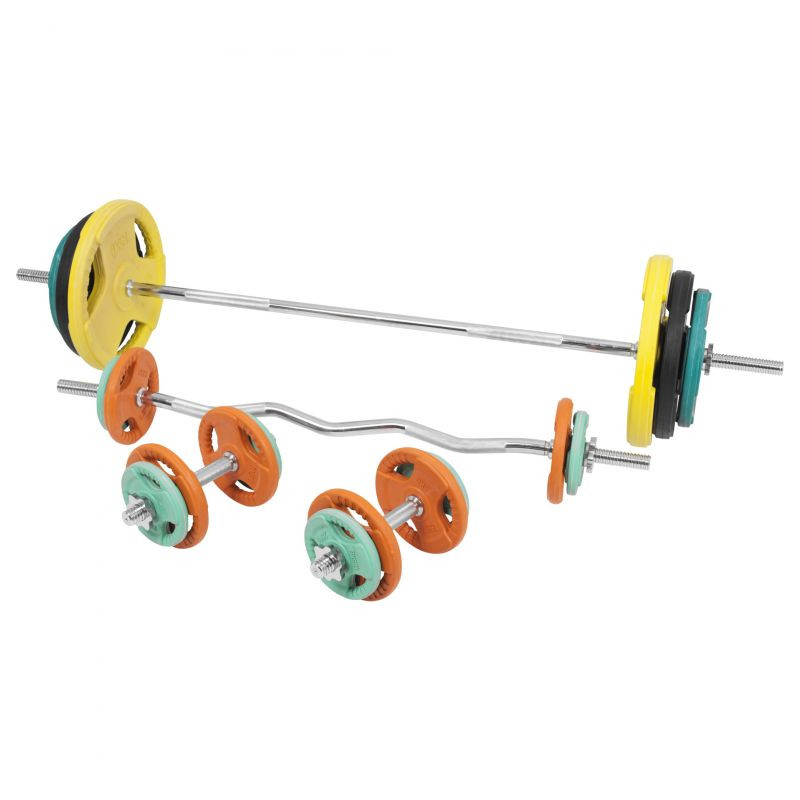 Tento činkový set obsahujúci dve jednoručné činkové tyče, EZ tyč a dlhú tyč so závitom, spolu s 18 kusmi záťažových kotúčov. Jedná sa o kompletnú sadu činiek s ktorou zvládnete akýkoľvek tréning s voľnými váhami. Činková sada obsahuje tiež 8 hviezdicových uzáverov pre zaistenie závažia a je spracovaná z kvalitnej pochrómovanej liatiny.