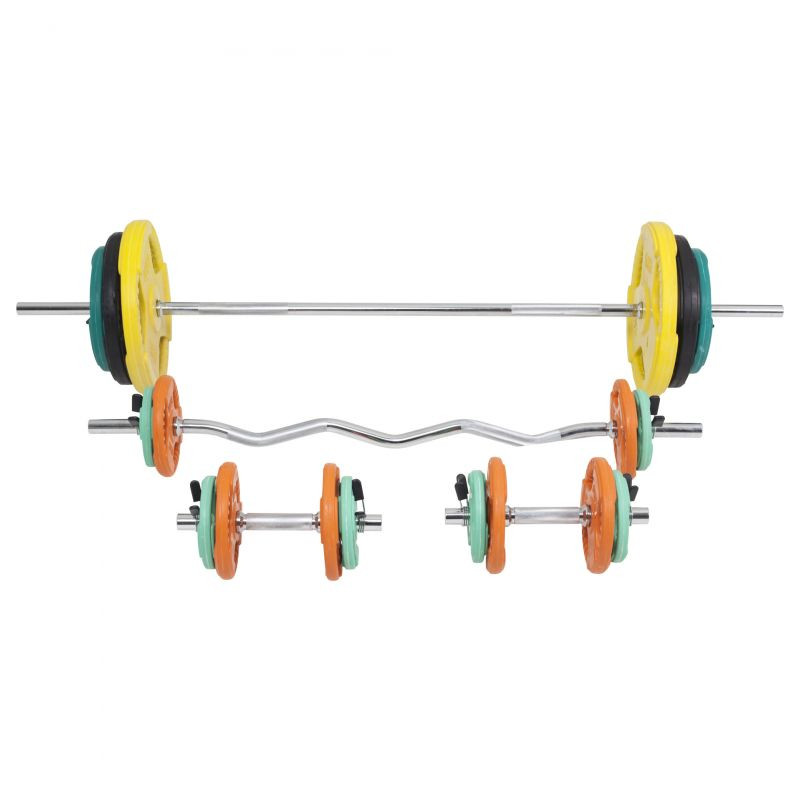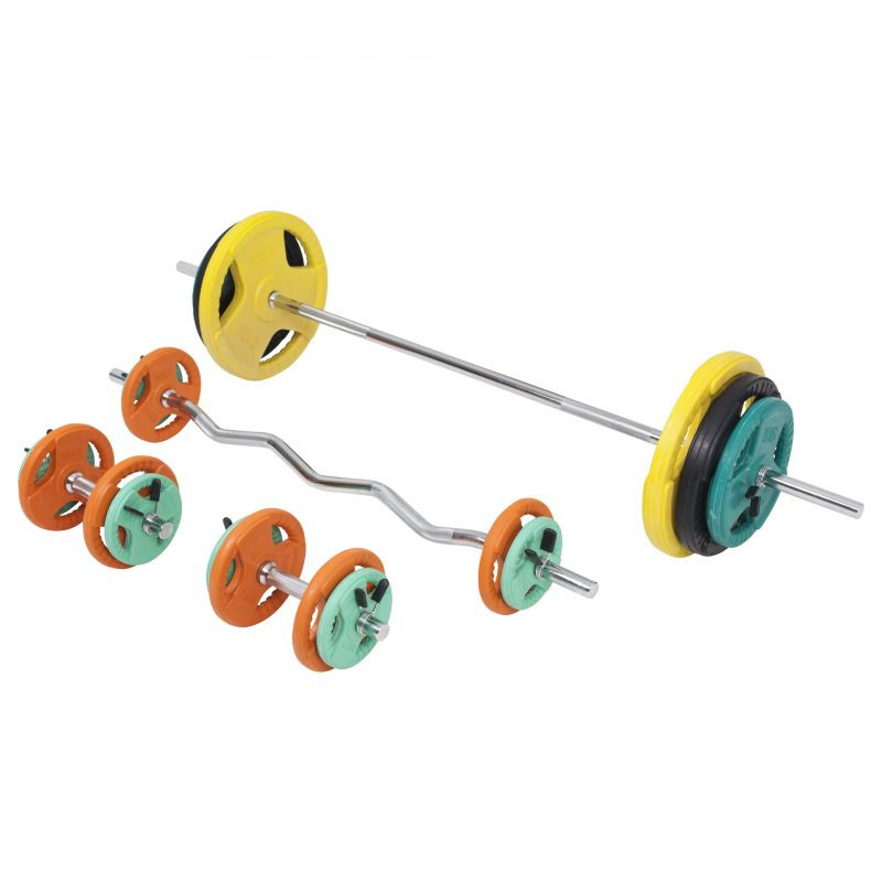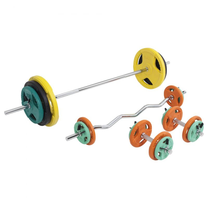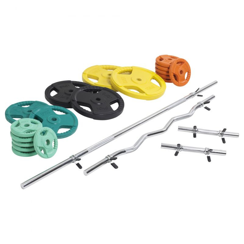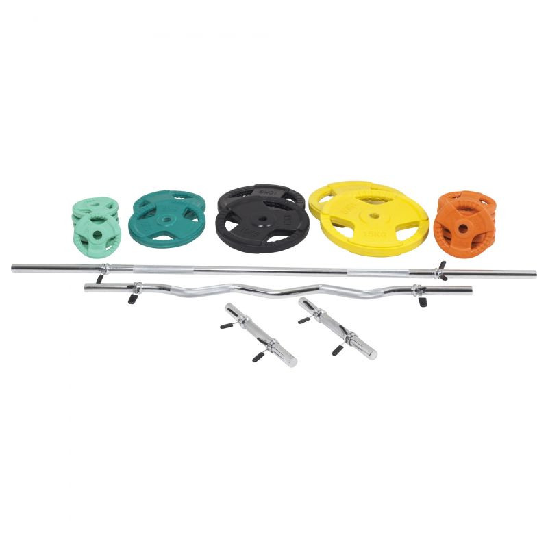Tento činkový set obsahujúci dve jednoručné činkové tyče, EZ tyč a dlhú tyč so závitom, spolu s 18 kusmi záťažových kotúčov. Jedná sa o kompletnú sadu činiek s ktorou zvládnete akýkoľvek tréning s voľnými váhami. Činková sada obsahuje tiež 8 pružinových uzáverov pre bezpečné zaistenie závažia a je spracovaná z kvalitnej pochrómovanej liatiny.