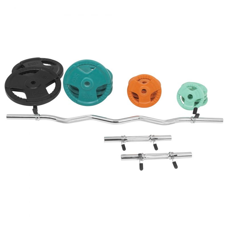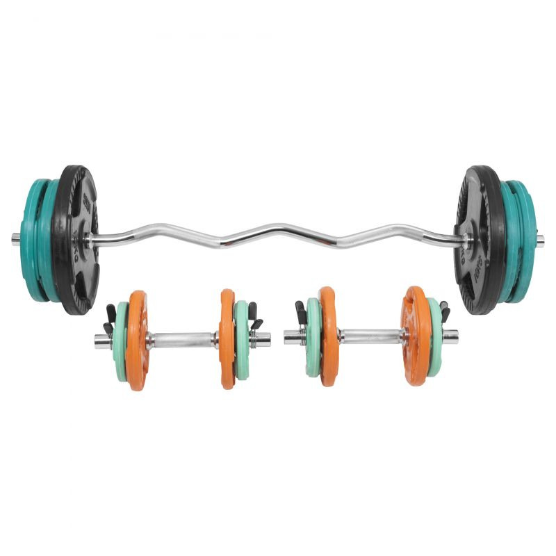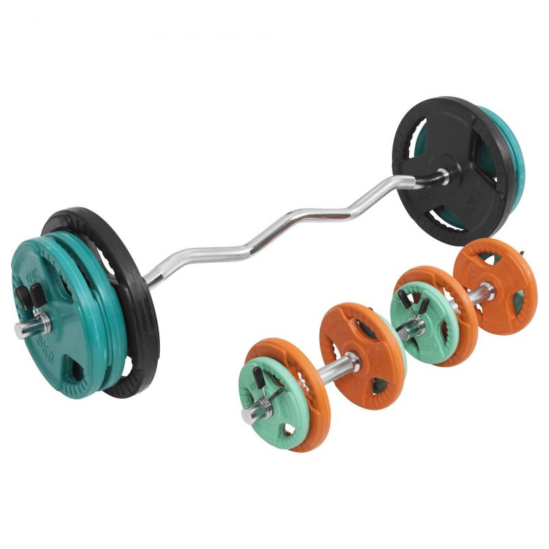 Vďaka zakriveniu sú EZ osi ideálnymi tréningovými spoločníkmi. Používaním zakrivených činiek sa vyhýbate zraneniam kĺbov, väzov a tiež kŕčom, ktoré môžu vznikať pri neprirodzenom úchope rovných činiek. S týmto setom môžete vykonávať plejádu cvikov pre celé telo.