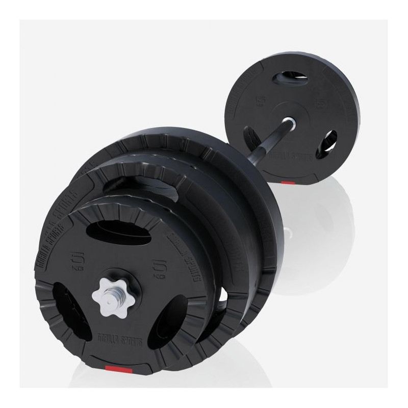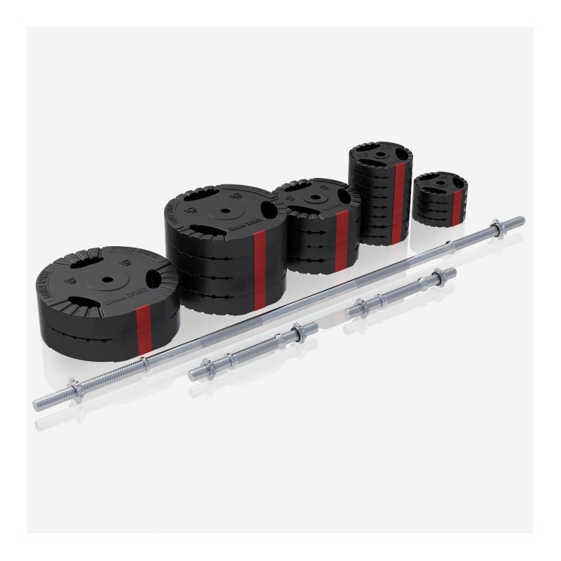 Chromovaná tyč s hviezdicovými zámkami umožňuje rýchlu výmenu závaží. Žebrovaný úchop zabezpečí pevné držanie. Plastový povrch závaží chráni podlahu pred poškodením. Sada je vhodná pre všetky kotúče s otvorom 30/31 mm. Jednoduchá údržba a vysoká odolnosť zaručujú dlhodobé používanie.