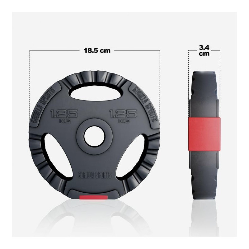 - 4x 1,25 kg: priemer: 18,5 cm, hrúbka: 3,4 cm