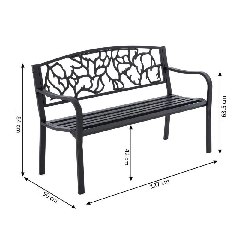 Ľahká a elegantná záhradná lavička s opierkami v nadčasovom dizajne, ktorú môžete, samozrejme, použiť aj ako balkónovú alebo záhradnú lavicu. Lavica sa skladá z robustného kovového rámu v čiernej farbe. Doplňte toto posedenie vonkajšími stolmi a stoličkami pre Vaše osobné záhradné usporiadanie. Lavička je navrhnutá pre až 3 osoby, je odolná proti poveternostným vplyvom, robustná, stabilná a ľahká. Okrem toho je povrch veľmi ľahko udržiavateľný a nevyžaduje žiadne špeciálne prostriedky na starostlivosť. Lavička je postavená behom okamihu.