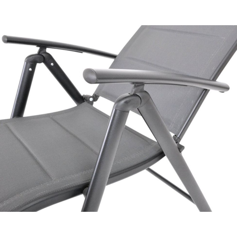 Stabilná hliníková konštrukcia je odolná voči korózii a poveternostným vplyvom. Textília 2x1 s penovou výplňou je príjemná na dotyk a ľahko sa udržiava. Kreslo má nosnosť 120 kg a vďaka skladaciemu prevedeniu šetrí miesto počas uskladnenia.