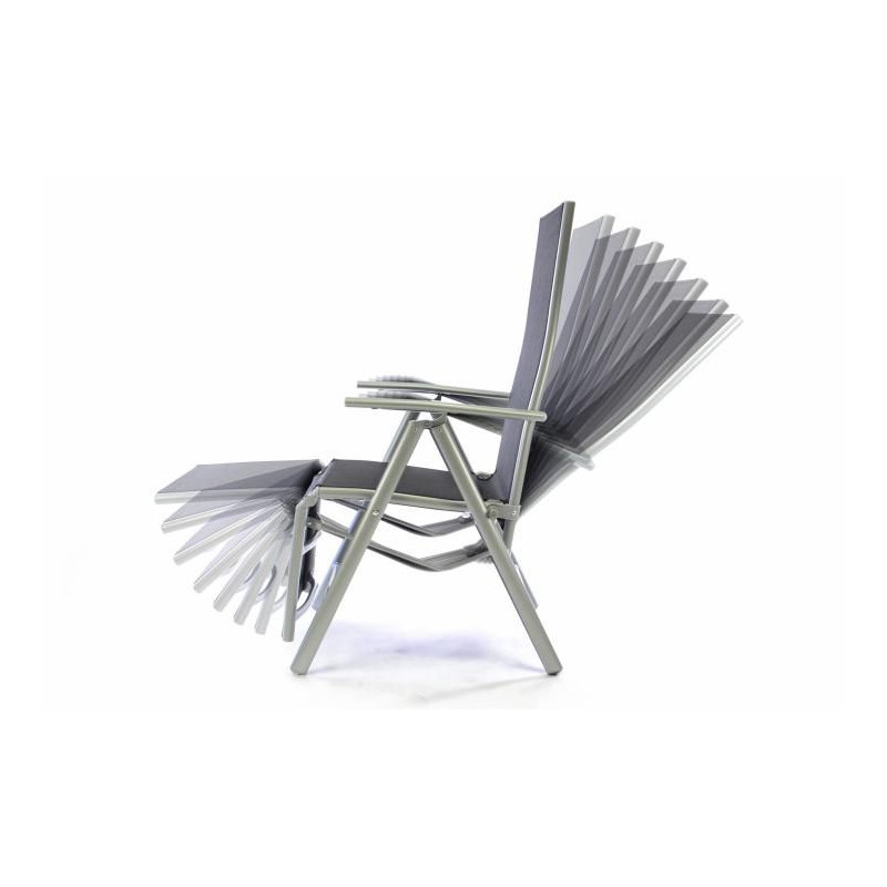 Praktické kreslo je ľahké, úsporné na miesto, dobre uskladniteľné a priam nabáda k relaxácii. Opierka chrbta a rúk je nastaviteľná do 7 rôznych polôh. Tento model môžete použiť ako relaxačnú stoličku alebo ako ležadlo na opaľovanie. Kvalitná textília (PVC potiahnutý polyester) je počasiu odolná a švy sú zvarené. Kreslo zaručuje optimálnu ventiláciu na sedadle a opierke chrbta. Voľné napnutie tkaniny sa individuálne prispôsobuje kontúre chrbta. Kreslo je vhodné na terasu, záhradu, balkón, kúpalisko alebo pri kempovaní.