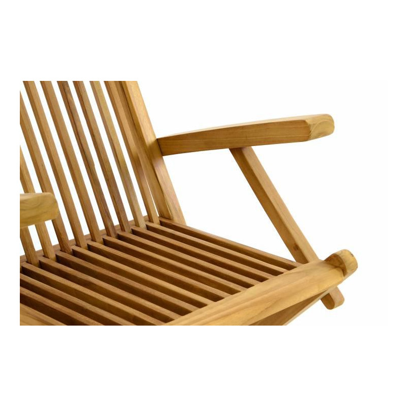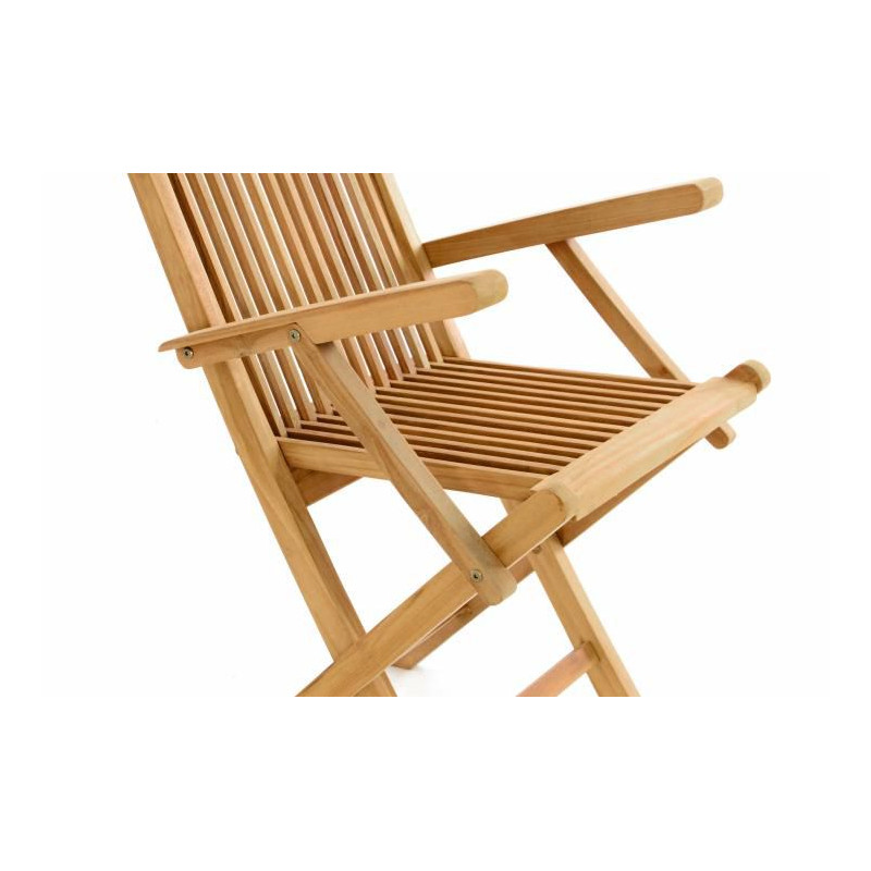 Masívna skladacia stolička s vysokým operadlom je vyrobená z teakového dreva. Hodí sa predovšetkým na terasy a záhrady, kde si s rodinou a priateľmi môžete užívať príjemné letné večery. Stolička je skladacia a umožňuje tak jednoduché uloženie. Jedná sa o produkt, ktorý vás nadchne už porovnaním pomeru kvality a ceny.