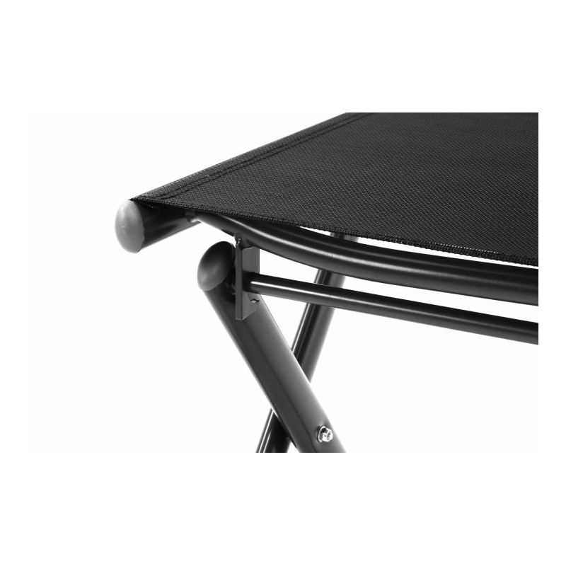 Textilná tkanina v čiernej farbe je tvarovo aj farebne stabilná. Textilná tkanina na vonkajšie použitie ponúka vysoký dlhodobý sedací komfort, resp. pohodlnú oporu nôh, ktorým sa prispôsobí. Tkanina ponúka optimálnu ventiláciu sedacej plochy, je odolná voči vplyvom počasia a nenáročná na údržbu. Zvarené švy. Sklopná stolička presvedčí sedacou plochou, ktorá je veľmi príjemná na dotyk, odpudzuje vodu a veľmi rýchlo uschne.