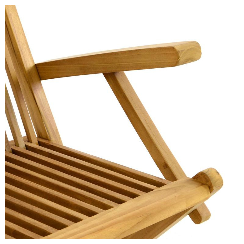 Masívna skladacia stolička s vysokým operadlom je vyrobená z teakového dreva. Hodí sa predovšetkým na terasy a záhrady, kde si s rodinou a priateľmi môžete užívať príjemné letné večery. Stolička je skladacia a umožňuje tak jednoduché uloženie. Jedná sa o produkt, ktorý Vás nadchne už porovnaním pomeru ceny a kvality.