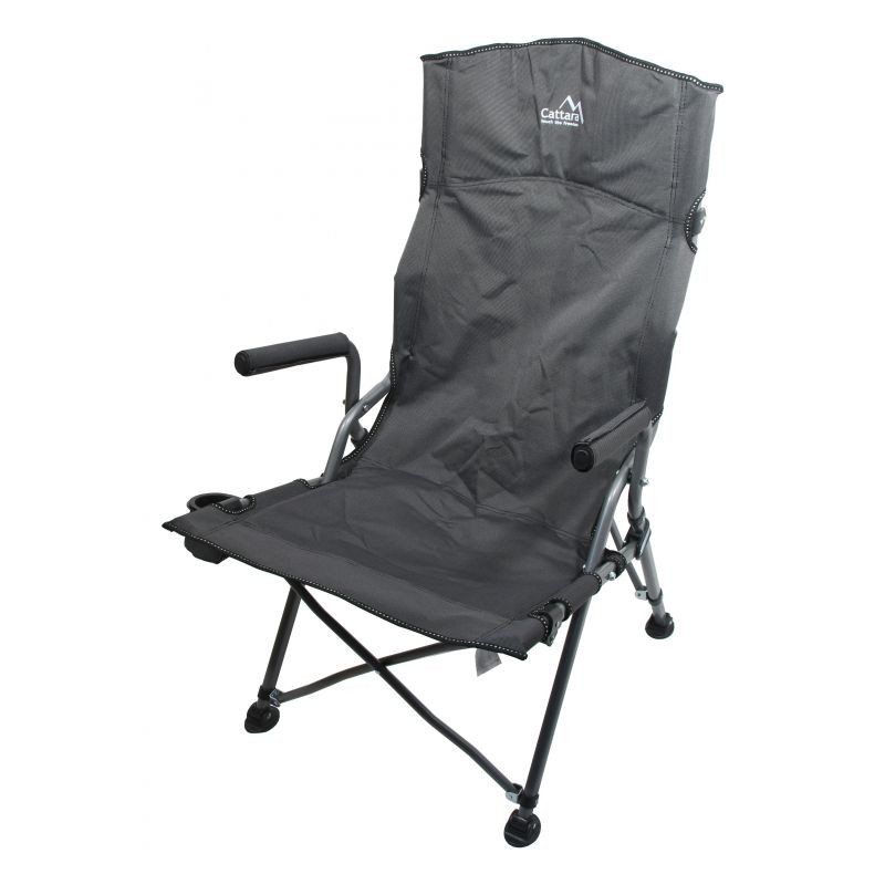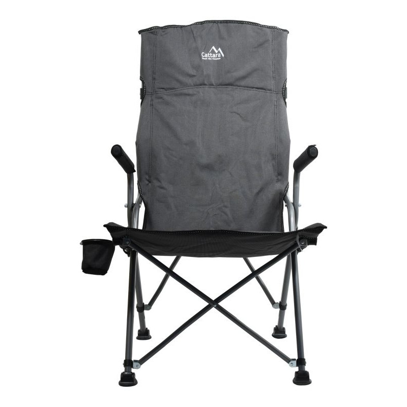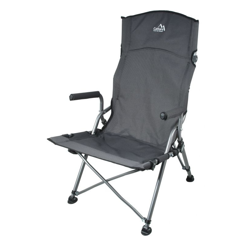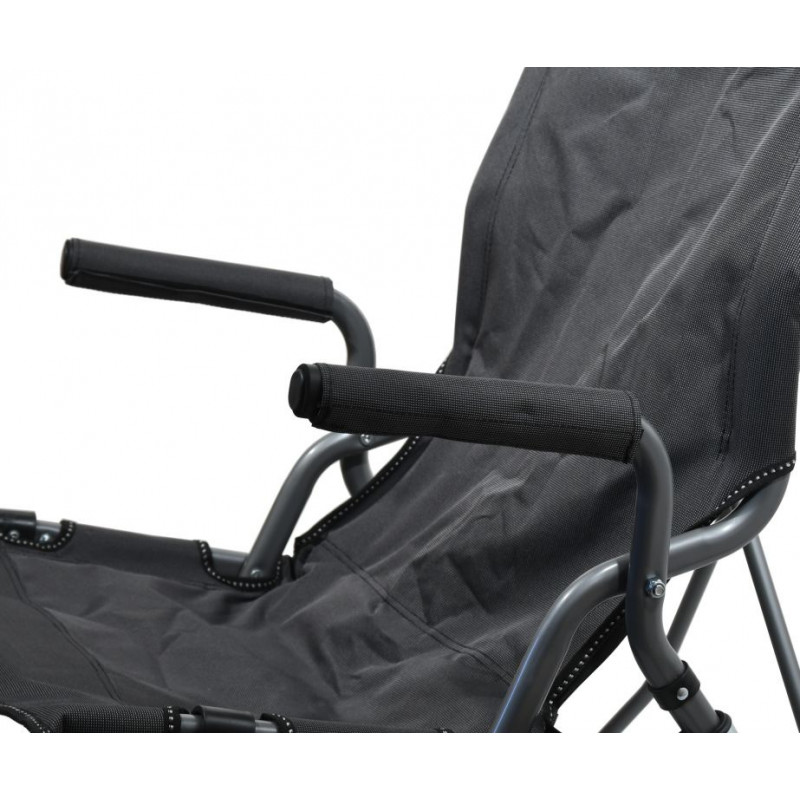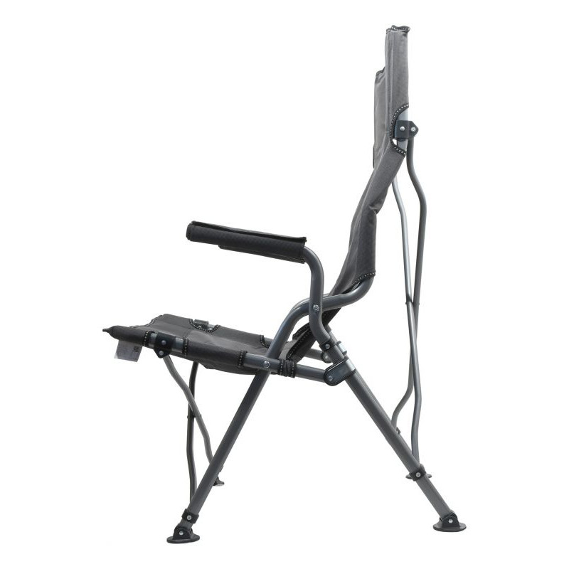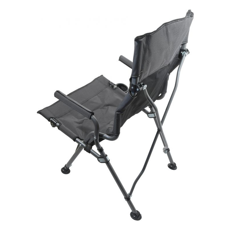 Stolička je ideálnym prostriedkom pre pohodlné posedenie pri vode, v prírode, ale aj odpočinok na záhrade. Kreslo je vybavené kvalitne zošitým poťahom a polstrovanými rukoväťami. V spodnej časti je konštrukcia vybavená vyklápacím držiakom na pitie. Nosná konštrukcia je dostatočne pevná.