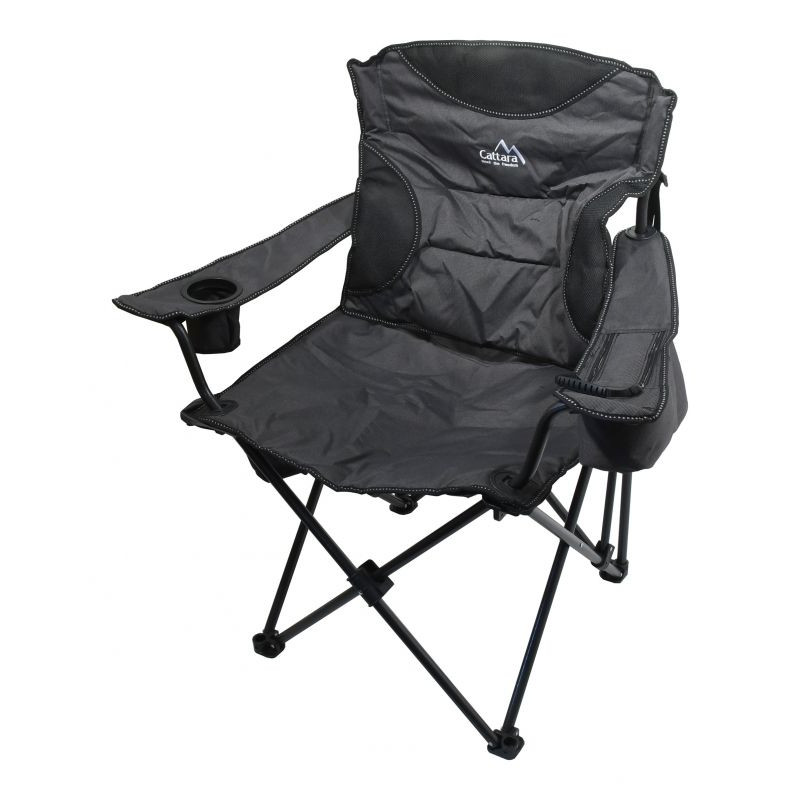 Stolička je ideálnym prostriedkom pre pohodlné posedenie pri vode, v prírode, ale aj pri odpočinku na záhrade. Je vybavená kvalitne zošitým poťahom a polstrovanými rukoväťami. Rukoväte sú doplnené o držiak na pitie a praktickú tašku na drobnosti. Nosná konštrukcia je dostatočne pevná.