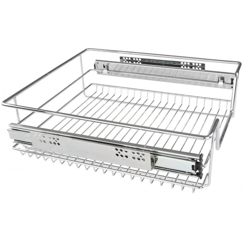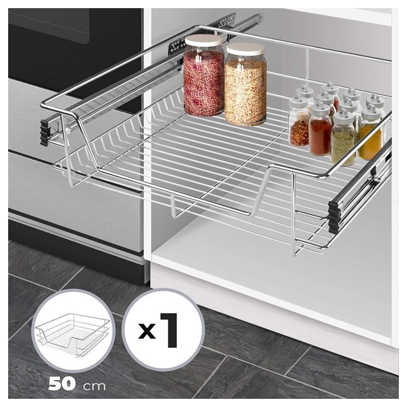 Táto zásuvka zabezpečuje poriadok nielen v kuchynskej skrini, ale využitie nájde aj v spálni, v obývacej izbe a na ďalších miestach. Vďaka svojej teleskopickej funkcii ju možno ľahko vytiahnuť a zasunúť späť. Je tu priestor pre potraviny, domáce potreby a mnoho ďalšieho. Naša zásuvka, vyrobená z robustného pochrómovaného kovu s maximálnou nosnosťou 20 kg, uľahčí usporiadanie predmetov v zásuvke.