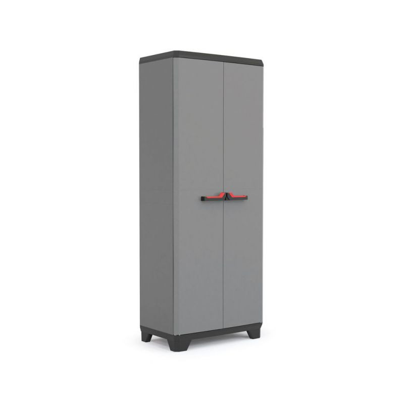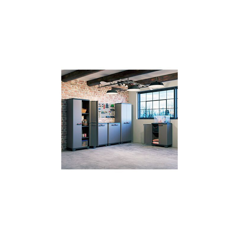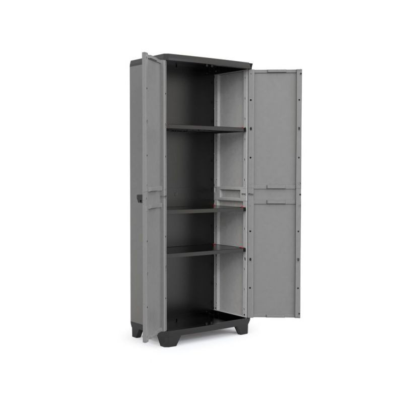 Veľká plastová policová skriňa s nosnosťou 15 kg na policu sa ideálne hodí na umiestnenie v dielňach, šatniach, na verandách alebo v garážiach. Je veľmi praktickým pomocníkom na organizáciu rôznych vecí. V skrini nájdete tri police, ktoré môžete variabilne umiestniť. Nosnosť každej z nich je maximálne 15 kg. Montáž skrine s policami zaberie približne desať minút. Skriňa je vybavená pevným očkom na pripevnenie visiaceho zámku.