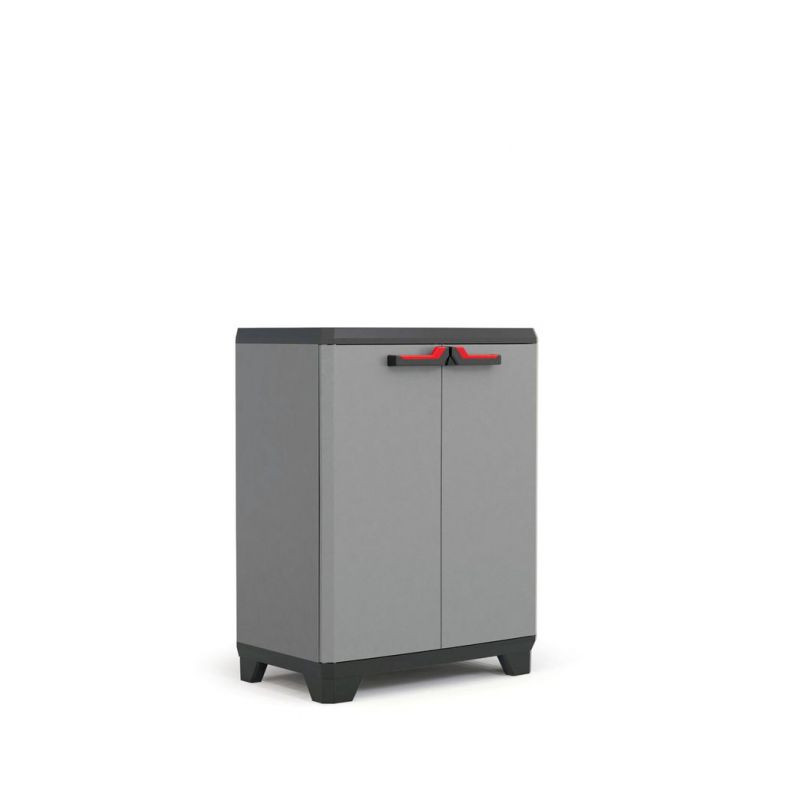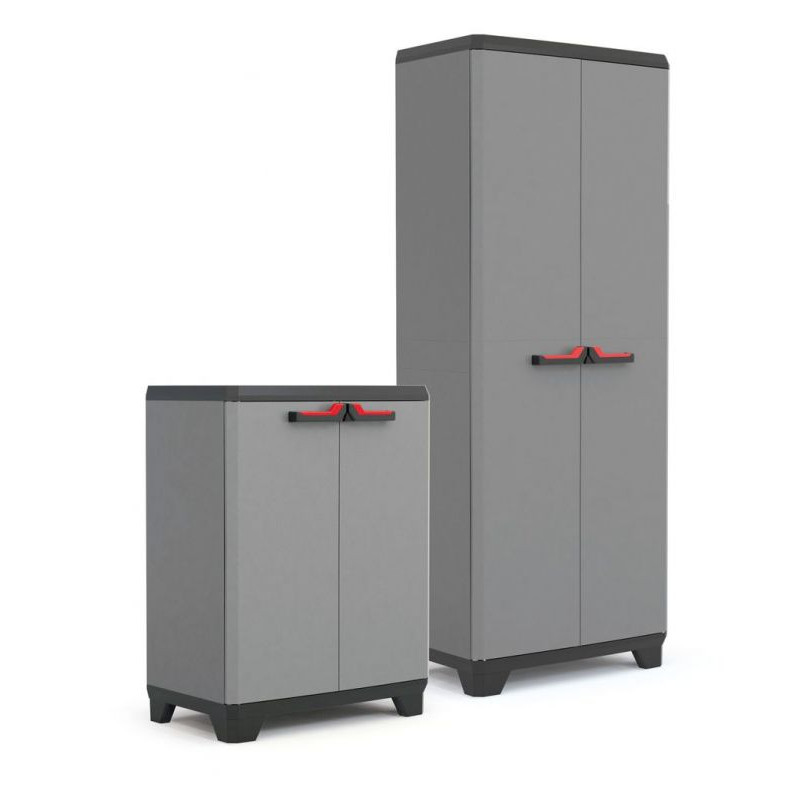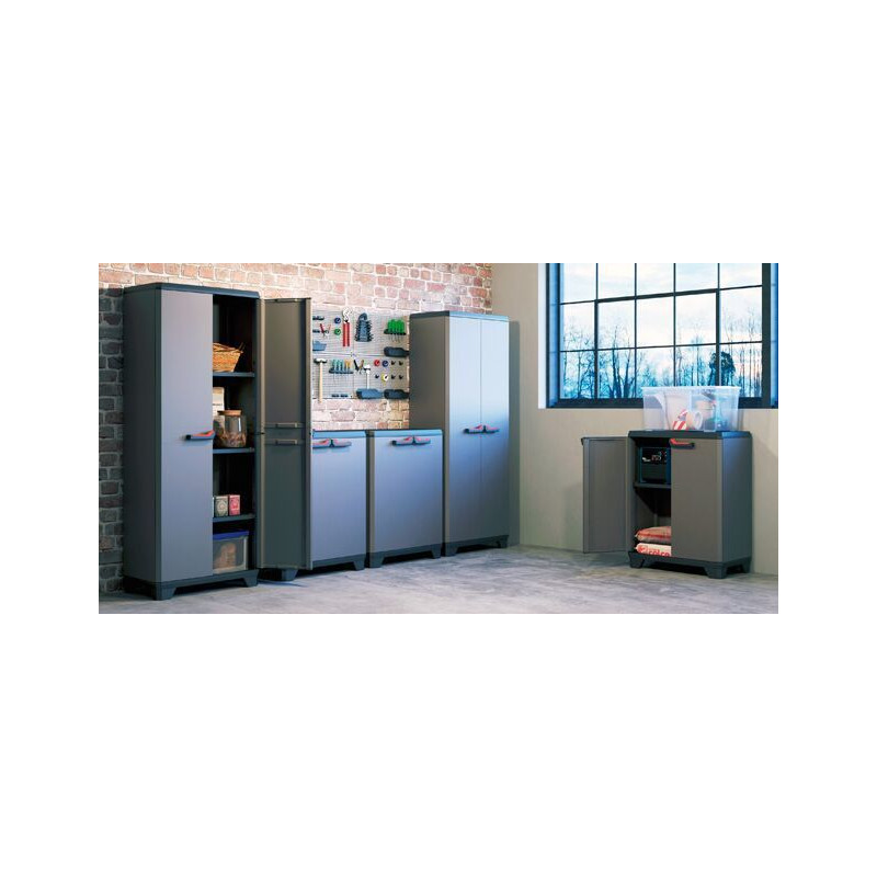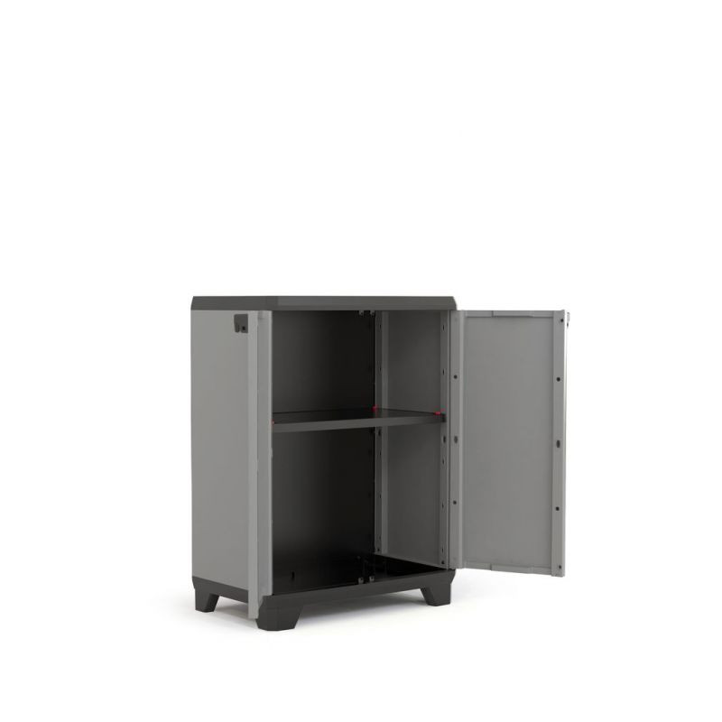Menšia plastová policová skrinka s nosnosťou 15 kg na policu sa ideálne hodí na umiestnenie v dielňach, šatniach, na verandách alebo v garážiach. Je veľmi praktickým pomocníkom na organizáciu rôznych vecí. V skrinke nájdete tri police, ktoré môžete variabilne umiestniť. Nosnosť každej z nich je maximálne 15 kg. Montáž skrinky s policami zaberie približne desať minút. Skrinka je vybavená pevným očkom na pripevnenie visiaceho zámku.