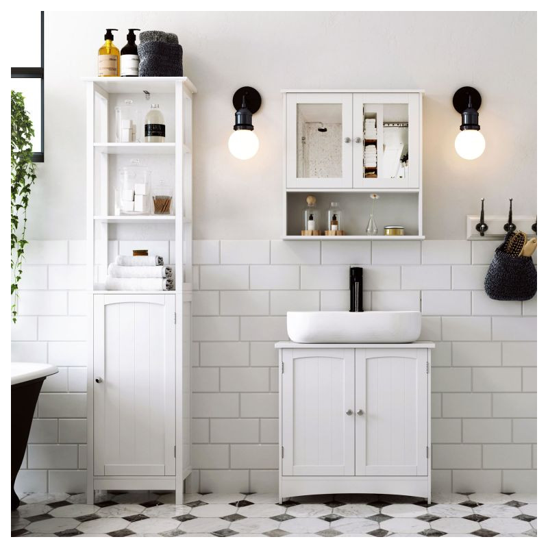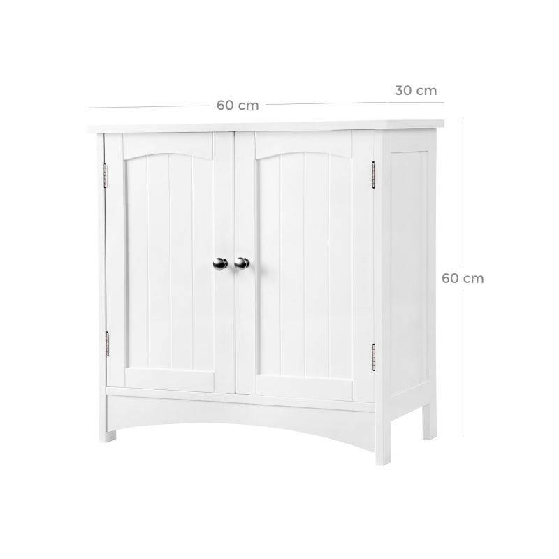Vytvorte si v kúpeľni poriadok a elegantný úložný priestor s touto bielou skrinkou VASAGLE pod umývadlo. Vďaka nastaviteľným policiam ľahko uložíte uteráky, čistiace prostriedky aj kozmetiku a zároveň zakryjete nevzhľadné sifónové rúrky. Praktické dvierka s kovovými úchytmi ochránia všetko pred prachom aj vlhkosťou.